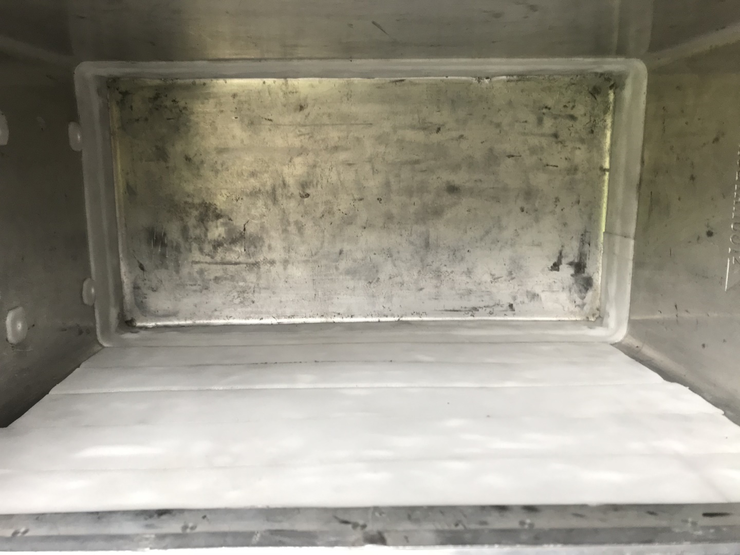 Danke. Weiter gehts: mit Spachtel und weiterem Arbeitsmaterial werden die ganzen Silikon"fugen" und -reste entfernt. Anschliessend werden die Koffer bis in den letzten Winkel geputzt: