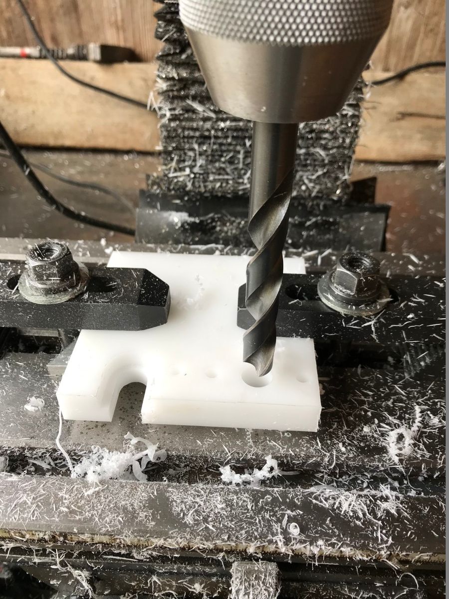 Es werden je drei Aufnahmezapfen aus Aluminium gedreht und Halterungen gefräst. Pro Koffer sind zwei Halter aus POM und wegen der Diebstahlsicherheit und Robustheit einer aus Alu.