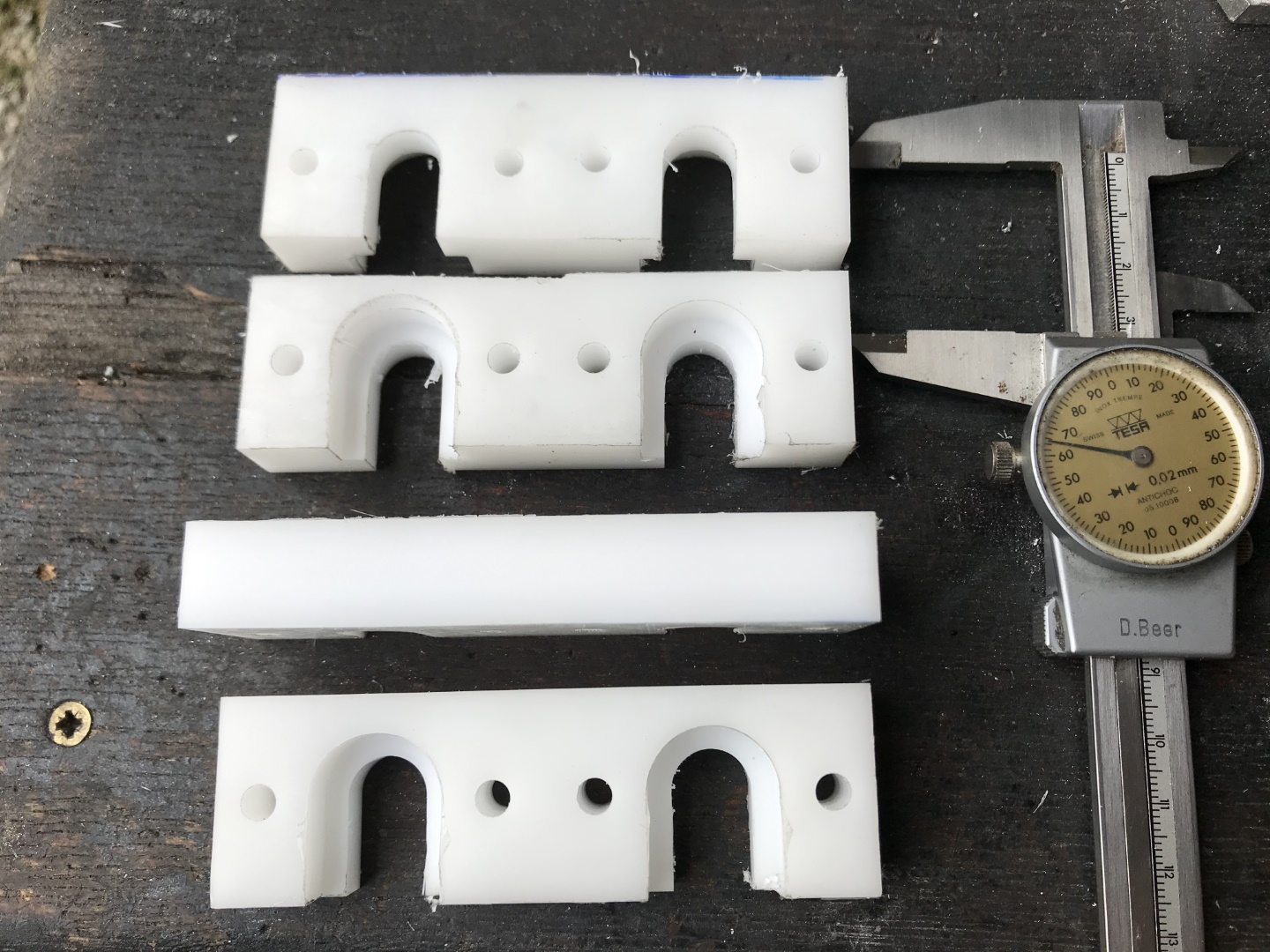 Es wird gemessen und gerechnet, Prototypen gebaut, angepasst und verworfen. Dann das Material bestellt. Dazu ein paar Bilder von der Herstellung der finalen Teile: