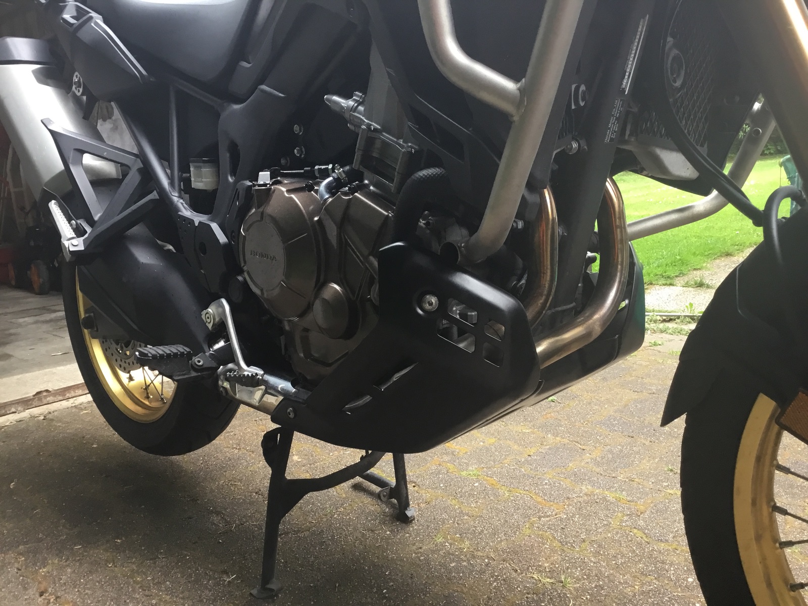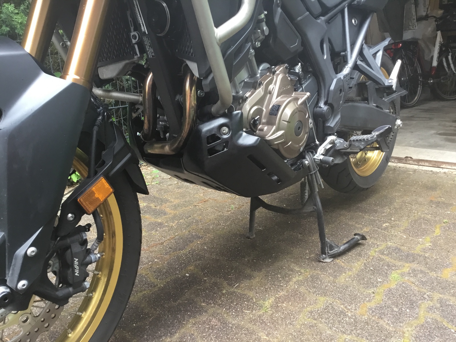 Tach auch, ich wollte euch mal meine jetzt in schwarz matt pulverbeschichtete große Motorschutzplatte zeigen... Das Originalteil - ich denke, es gehört zum Dekorahmen dazu bzw. ist Grundausstattung bei der ATAS - ist ja in Alu und nicht lackiert. Leider ist zumindest meine auch nicht irgendwie geschützt, so dass sie im Winter ganz matt und unschön geworden ist. Wahrscheinlich hat sie doch mal Salz abbekommen