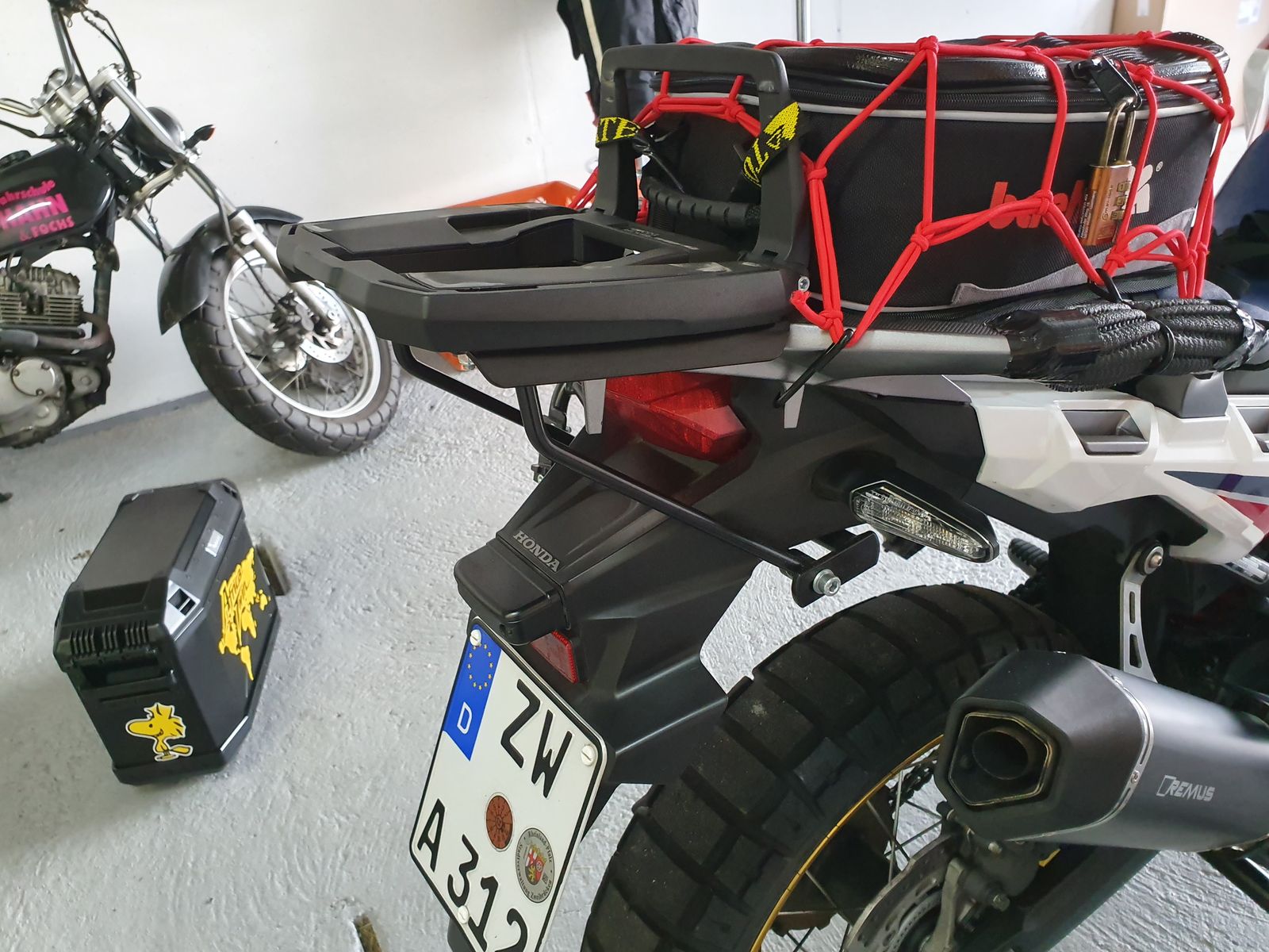 Topcase X Plorer schwarz mit Halterung und Verstefungsbügel für mehr Last.