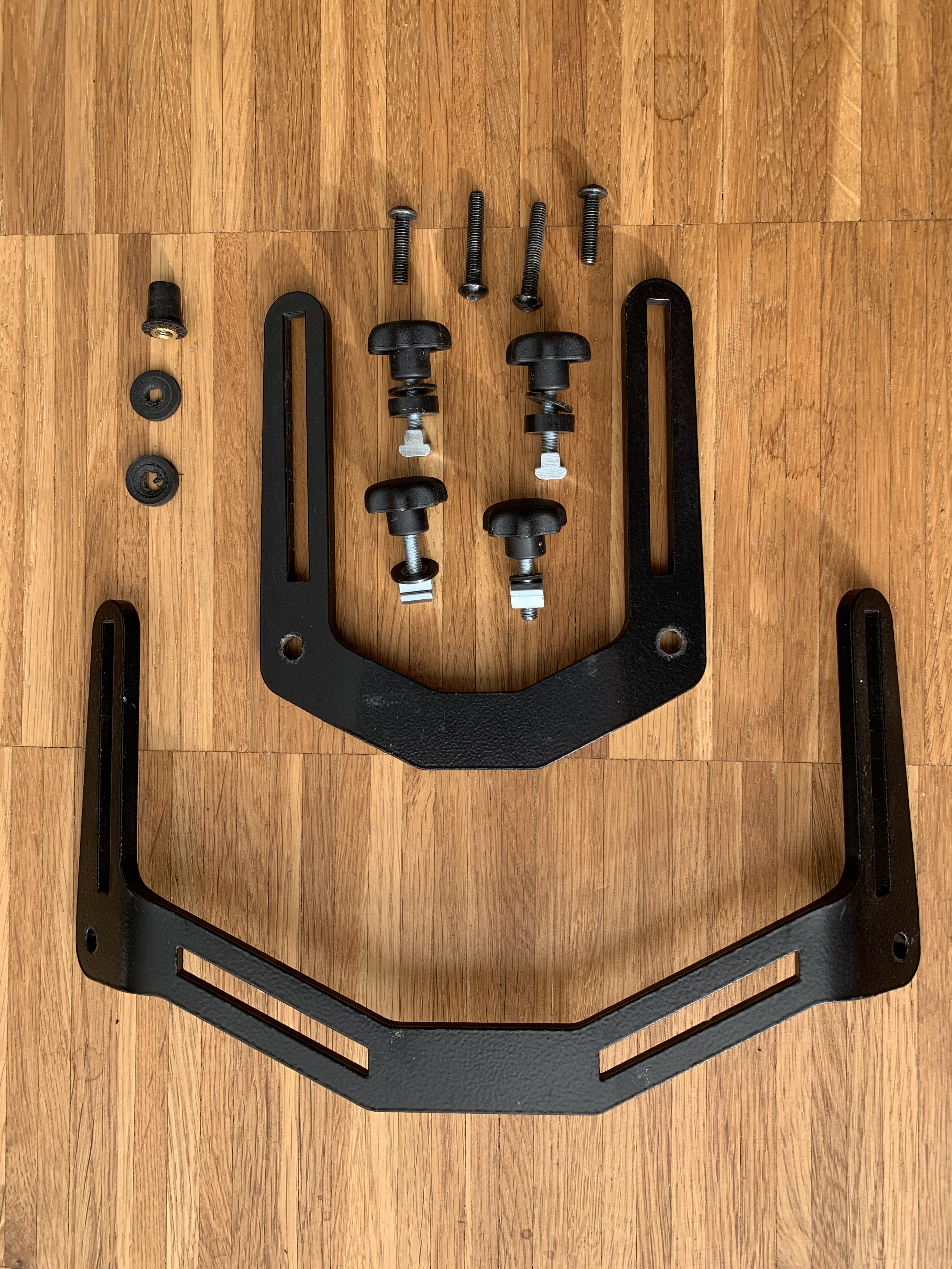 Verkaufe einen Batzen Scheibenversteller für die CRF 1000 L. Alle enthaltenen Teile siehe Bild 1. Wie auf dem zweiten Bild zu sehen, fehlt eine kleine und eine große Unterlegscheibe. Die beiden Distanzscheiben haben Gebrauchspuren, siehe Bild 3. Ebenfalls auf Bild 3 zu sehen ist die selbstsichernde Mutter, die man nur braucht, wenn man das Original bei der Montage verliert - ebenfalls mit Gebrauchsspuren.