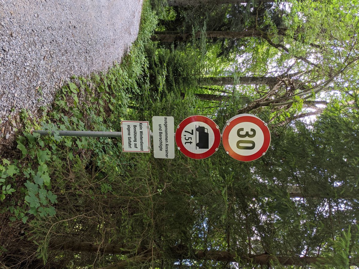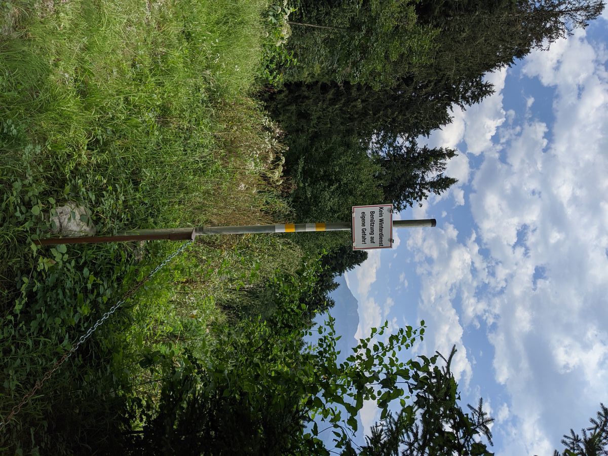 Leute, ich bin heute mal wieder aufs Dünser Älpile gefahren, mit meinem Stromrad (Eigenbau). Beim Runterfahren habe ich die Querfeldeinstrecke durch den Wald abwärts auf einer Forststraße genommen. Dabei ist mir die Beschilderung aufgefallen.