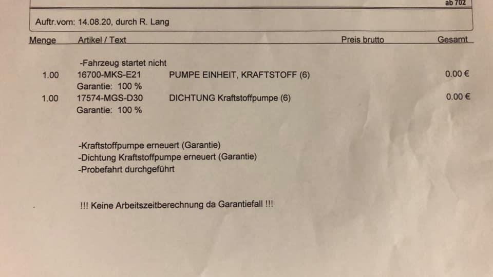 Neue CRF 1100 gekauft , 240 km gefahren , jetzt springt Sie nicht mehr an . Motor dreht , Geruch nach fördert auch die Benzinpumpe . Ersatzschlüssel versucht , funktioniert auch nicht . Sicherungen iO !
