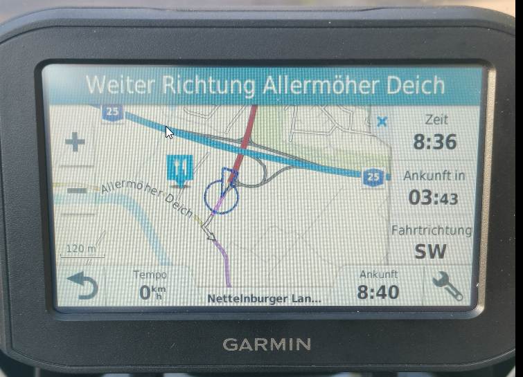 wenn ich ein Ziel eingegeben habe in den Zumo 396, berechnet er die Route und zeigt sie an. Dann aber kommt keine Ansage mehr. In der oberen Zeile steht nicht mehr die Entfernung zur nächsten Abzweigung, sondern nur noch die Strasse, wo es langgeht, siehe Bild. Keine Ahnung, woran das liegt. Hat jemand eine Ahnung, was da los ist? Was ich machen könnte? So ist es fast so, als ob ich einem Track folgen würde. ![]()