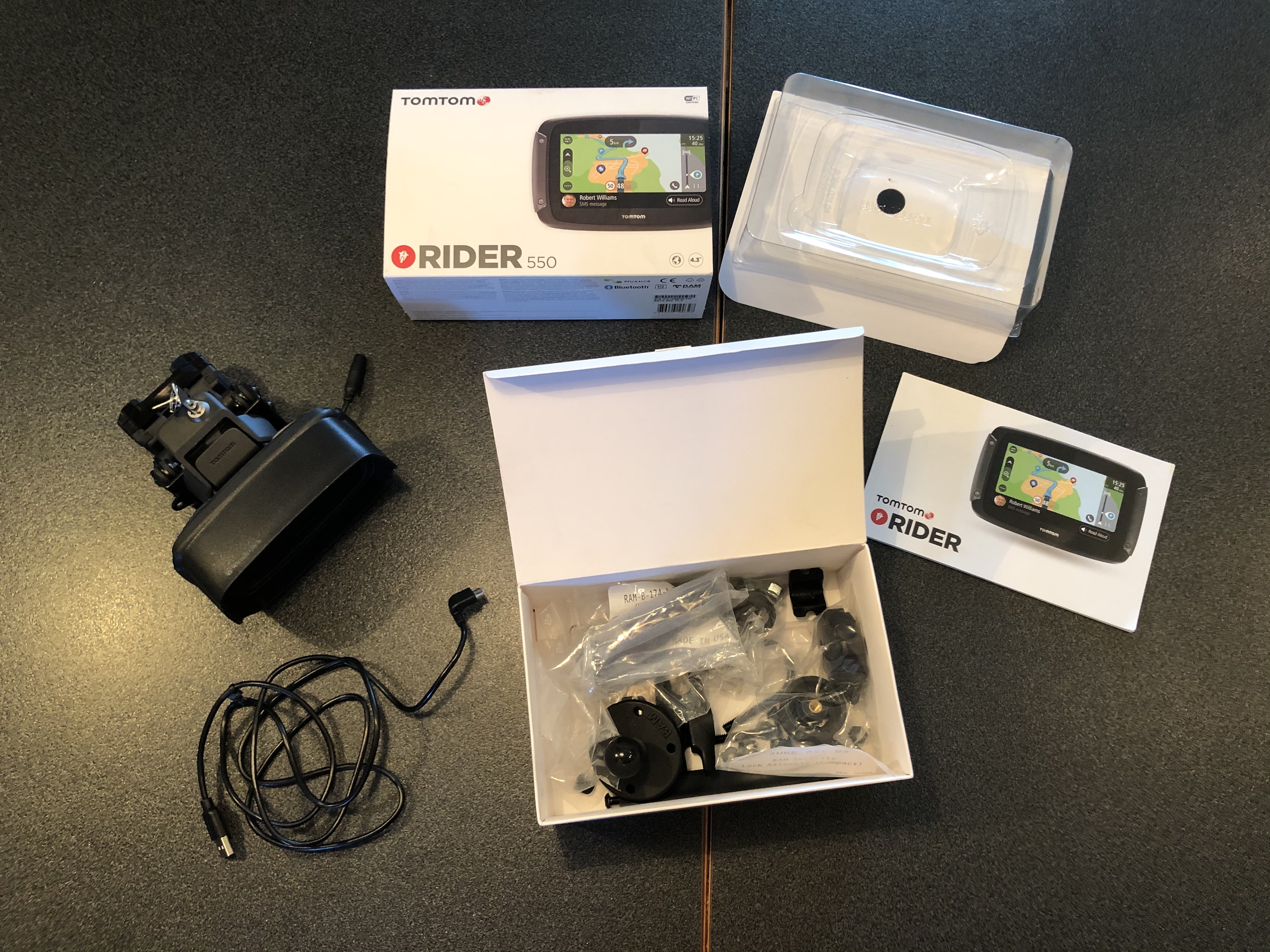 Im Karton sind noch diverse Teile. Ich nehme an, dass da das so genannte RAM Montierset von Tomtom dabei ist. Keine Ahnung, was der Freundliche da alles noch mit rein getan hat...