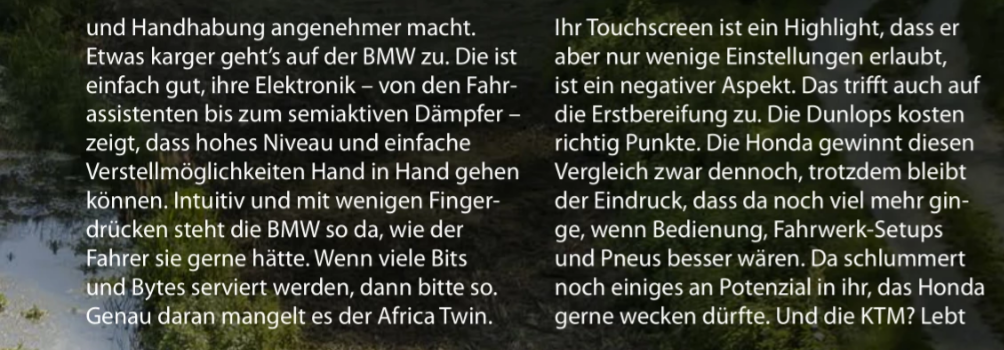 Es liegt immer daran was man will.Ich weiß dass die Versys keine Reiseenduro ist und nicht in diese Reihe passt, so ist es nur ein Beispiel wie ich die Motorräder erlebt habe
