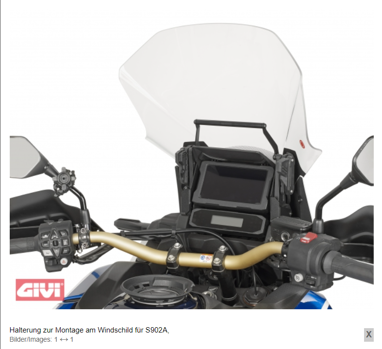 Givi wird einen Halter für Geräte zur zentralen Montage über dem Display bringen.