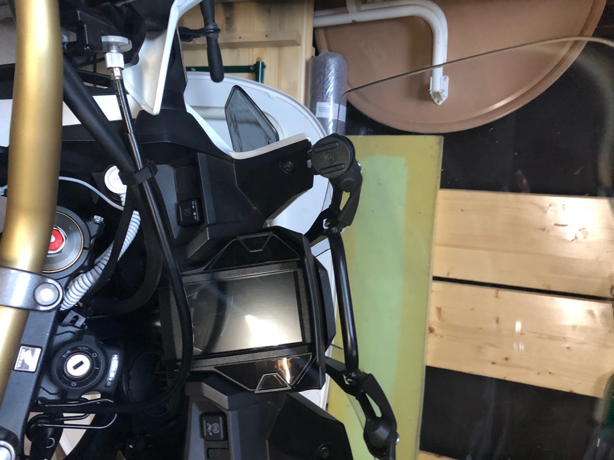 Hab letztens einen gesehen, war aber ein Sportbike, der hatte ne Navi / Handy Halterung ca 10-15cm vor dee Scheibe, also vor dem Motorrad!