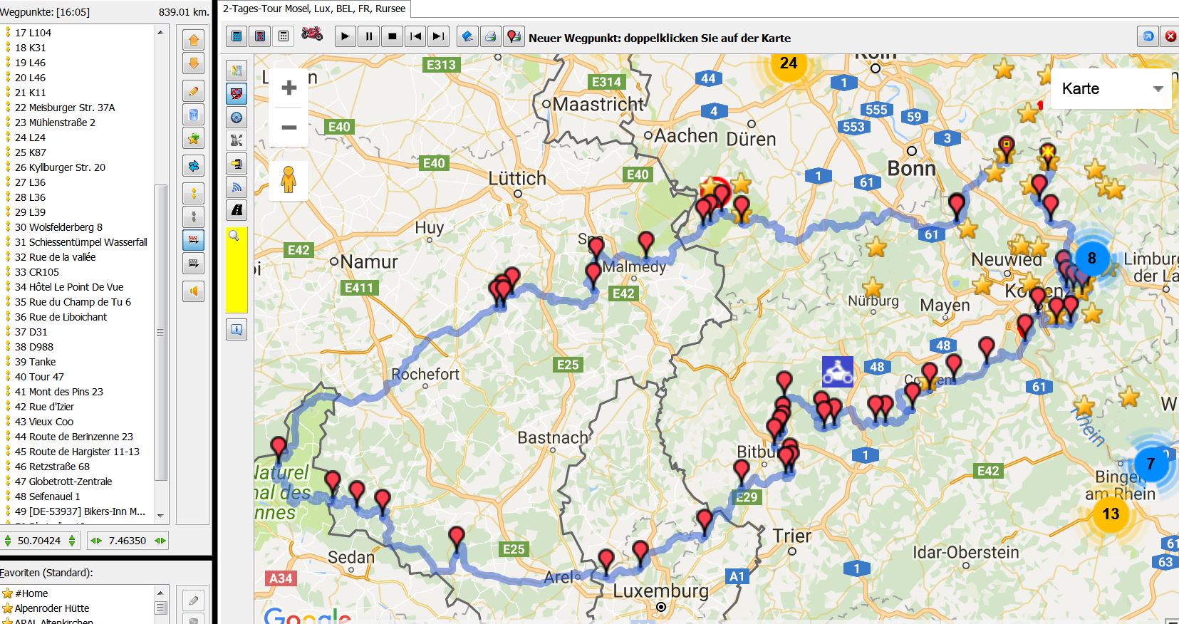 Ich komme bei einer Tagestour locker mit 30 WP's aus, und fahre genau daher, wo ich es auch geplant habe, mein Wort drauf. Und ich arbeite und plane viel mit Routenführung am Navi...Selbst wenn ich einen ganzen Tag ausschließlich Offroadstrecken plane, komme ich nicht an die 100 WP dran.