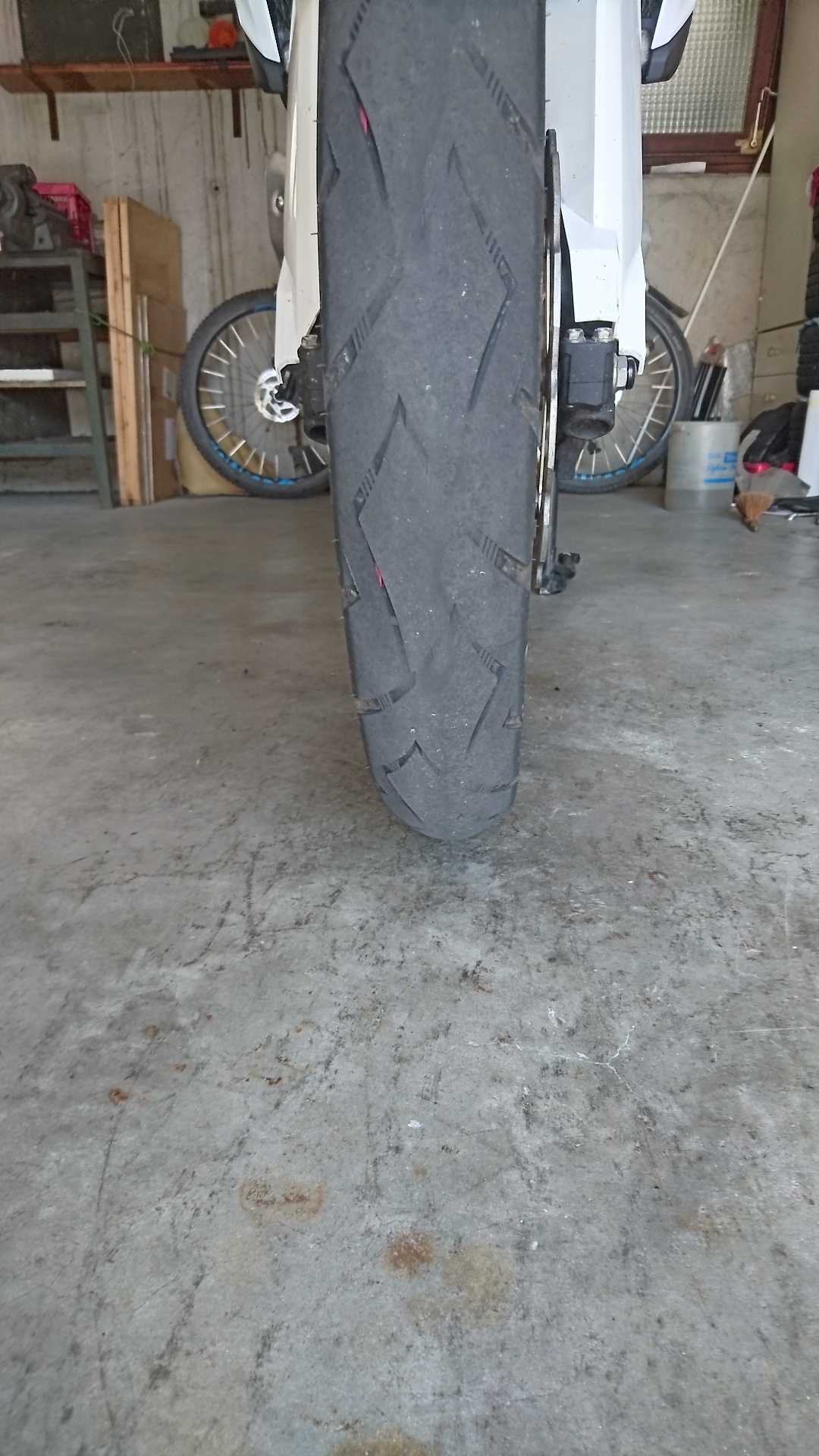 Bevor ich hier die Gabeltunnelverblendung, MRA Scheibe und zu guter letzte die Sturzbügel demontiere will ich erst sehen was die neuen Reifen bringen (Conti Trailattack 3).