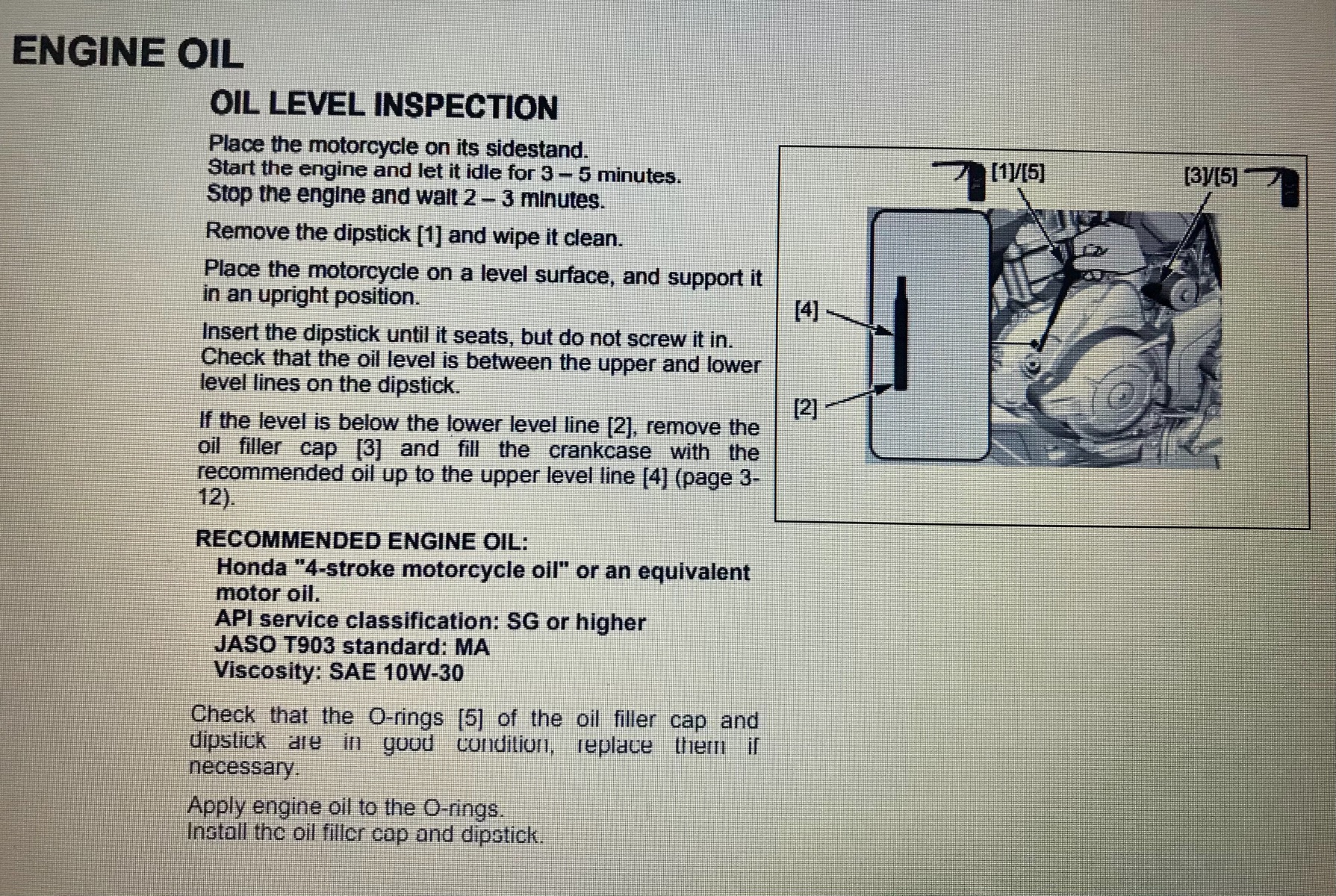 Place the motorcycle on a level surface, and support it in an upright position.Einfach mal googlen und übersetzen lassen... Ergebnis: