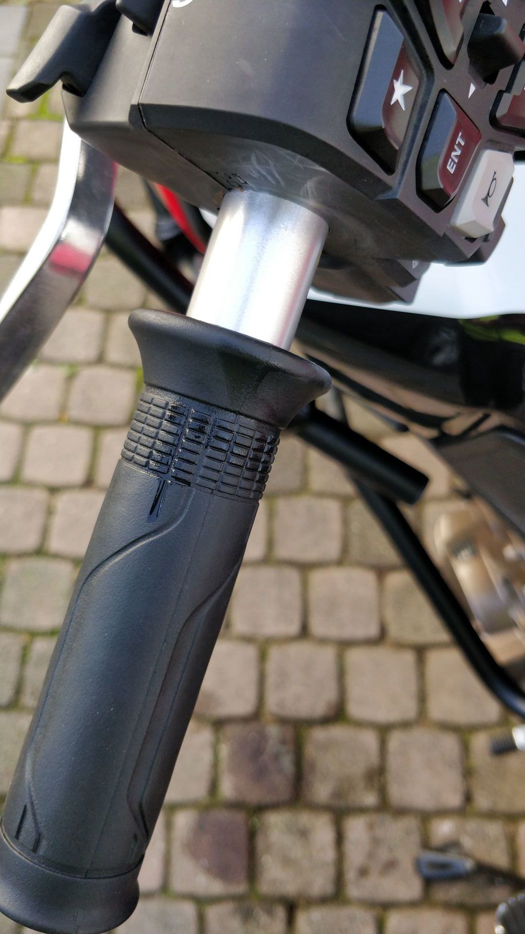 Ich brauche Mal wieder Hilfe. Habe vorhin die OEM Heizgriffe an der 1100er montiert, soweit alles gut, funktioniert wunderbar. Bei der Montage des linken Griffs ist der Kleber allerdings beim aufschieben schon ausgehärtet, jetzt fehlen mir zwei Zentimeter, kann natürlich nicht mehr fahren damit.