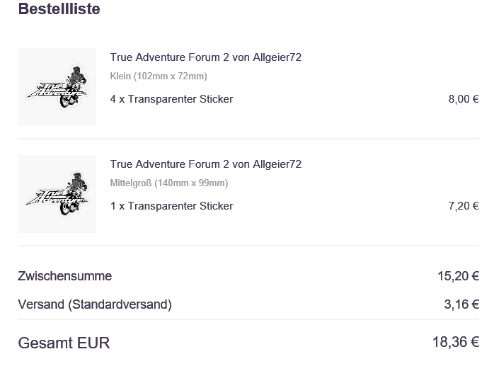 Duplicate Holgi: Ich hätte sonst mal in der Bestellungsübersicht nachschauen können, die ich von Redbubble bereitgestellt bekomme. Darin kann ich sehen, Was, Wann und in welcher Stückzahl bestellt wurde. Allerdings nicht von Wem.