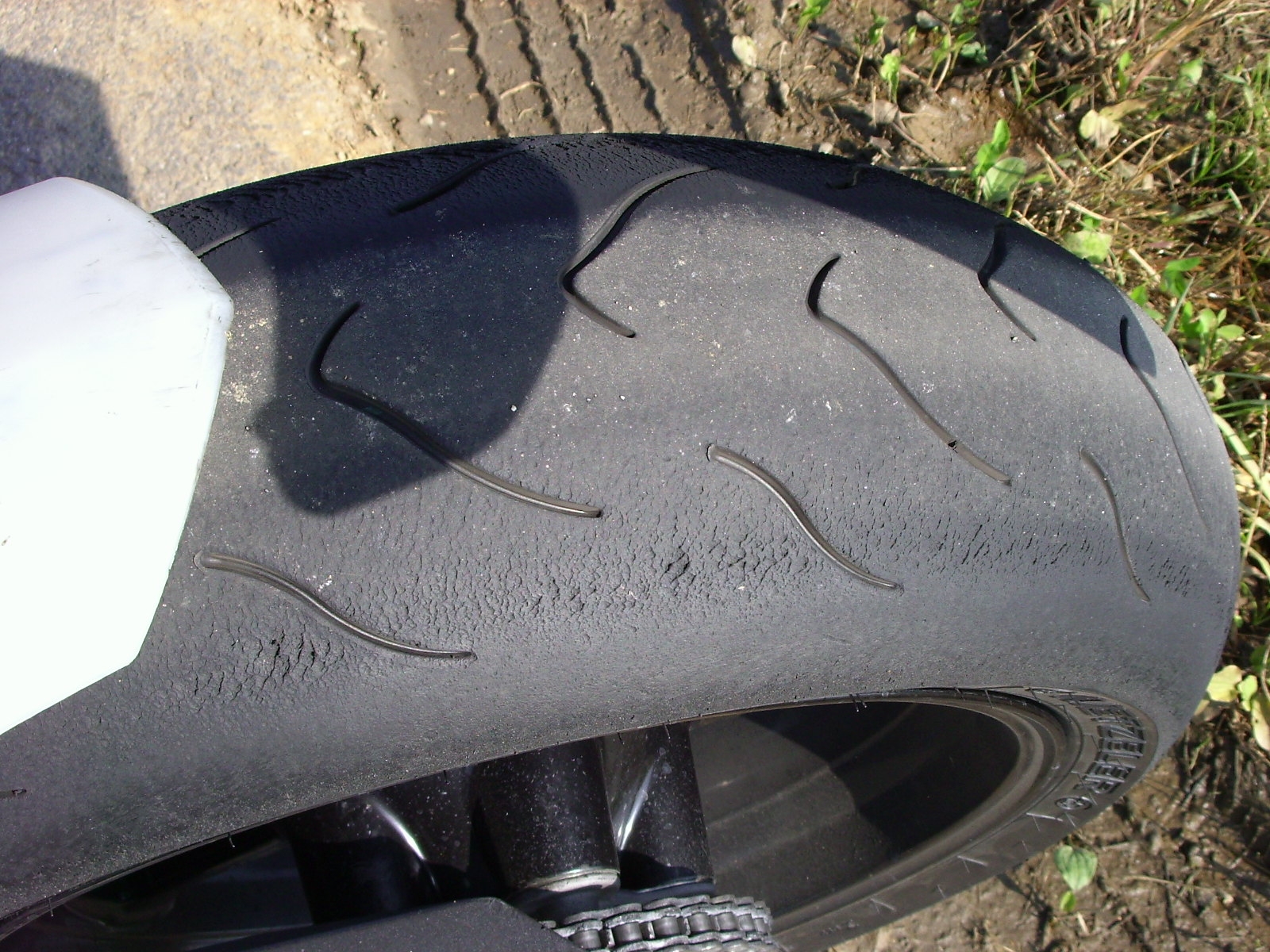 Nach dem Rennen, keine 200km, sind die Reifen runter.