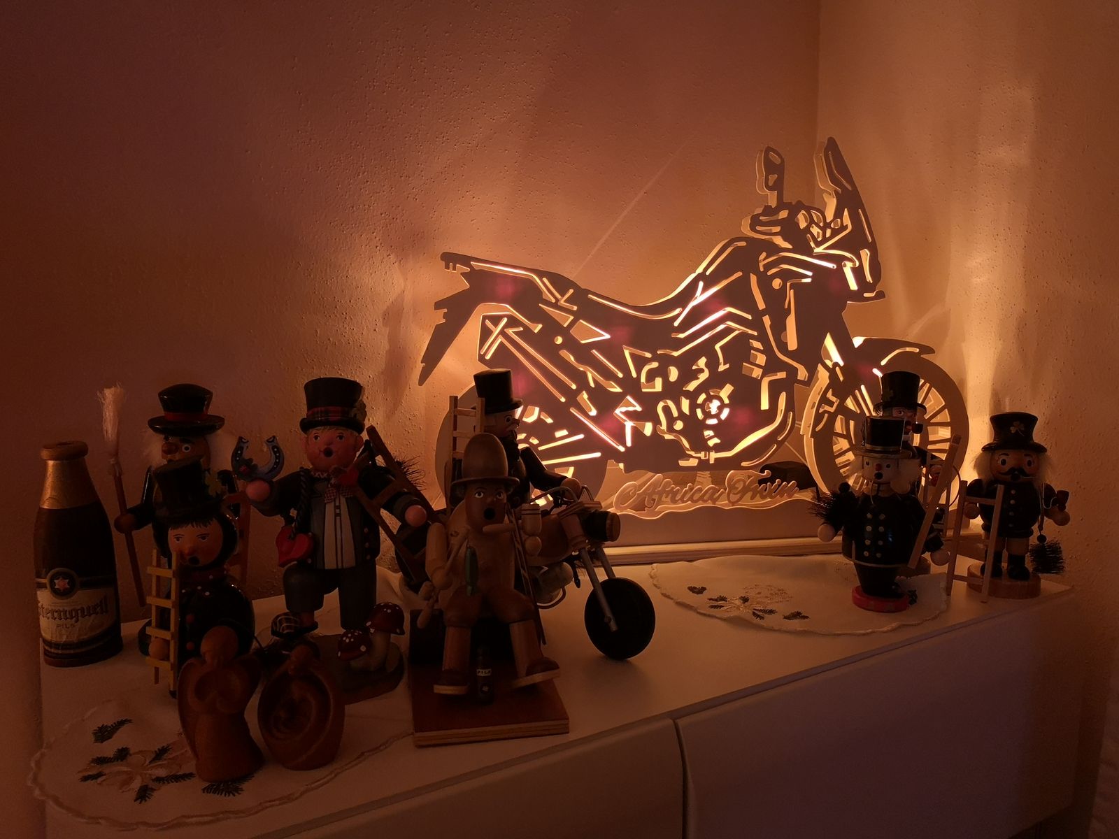 Leider hat meine (H)olde mit dem Fensterplatz nicht mitgepielt, dass ich "SIE" auf meinen Herrnschrank, bewacht von meinen Kaminkehrer-Kollegen (auch alle Erzgebirgskunst) gestellt hab