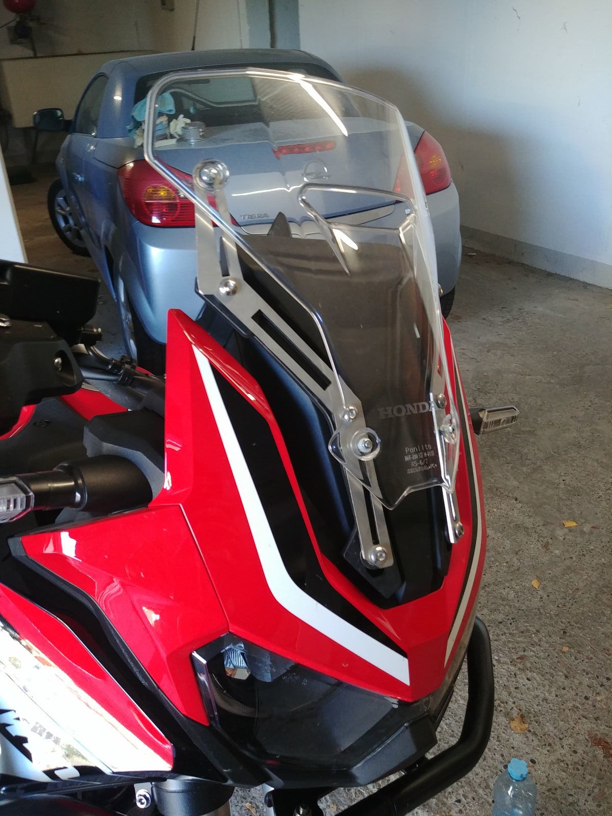 Das Windschild ist in der niedrigsten Position ca. 1,5 cm höher und lässt sich jetzt einfach mit der Hand um ca. 7cm-8cm verstellten, auch während der Fahrt. Durch den Anpressdruck der Führungen wird die Scheibe sehr fest gehalten. Falls sie bsp. im Offroadbetrieb doch rutschen sollte, dann können die oberen Schrauben einfach komplett angezogen werden. Abnutzung der Führung ist nicht zu befürchten, da besonders harter Edelstahl verwendet wird. Höchstens die Schrauben müssen möglichweise irgendwann mal für ein paar Cent erneuert werden.