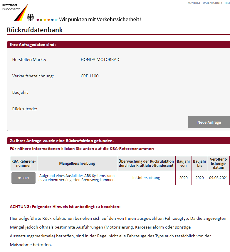 Alles anzeigenDiejenigen von euch, die mit ihren HH Probleme wegen des Rückrufs / der Rückruf haben, könnten sich ja auch einfach mal an Honda Deutschland wenden und ihren Fall dort schildern. Und sie könnten Honda Deutschland bitten Ihnen schriftlich zu bestätigen, dass der HH die Rückrufe auch starten darf / muss, ohne dass ein Brief von Honda oder vom KBA vorliegt. Damit kann man dann zu seinem HH gehen. Oder sich – wenn möglich – gleich einen anderen HH aussuchen.