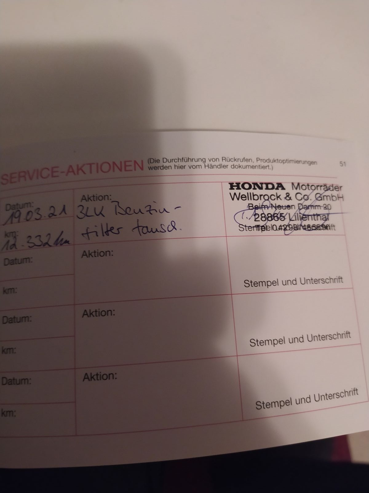 Da hat er zwar Recht aber bei Honda gibt es die Hefte noch und dann kann er es auch eintragen (meiner hat es eingetragen).