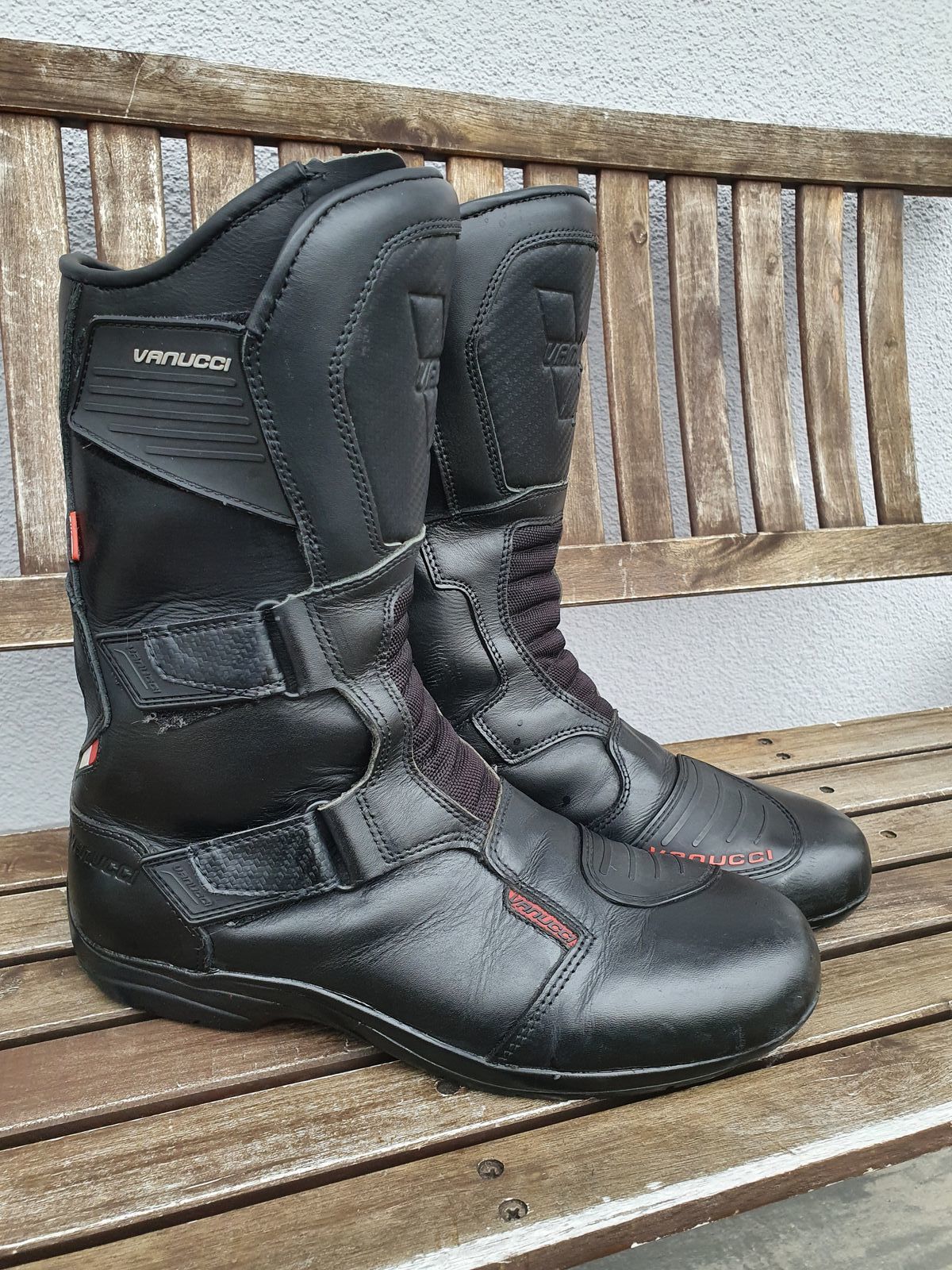 Biete wegen Umstieg ein paar perfekte Bikerstiefel. Zustand siehe Bilder. Ich hatte sie lediglich auf einer Tour durch Österreich an 1000km. Waren absolut angenehm zu tragen. Keine schwitzenden Füße und wasserdicht. Bin grundsätzlich begeistert. Ich möchte aber mehr ins Gelände und dort kommen die Schuhe einfach an ihre Grenzen.
