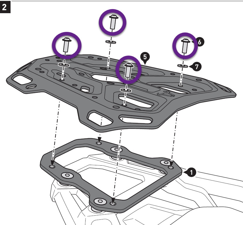 Irgendwo hier im Forum (ich finde die Stelle leider nicht mehr) habe ich gelesen, dass das Alu-Rack für die Honda Crosstourer 1200 auch auf die Gepäcksbrücke der ATAS, SD 09 passen soll. Das stimmt aber leider nicht. Die im Bild blau markierten Bohrungen sitzen ca. eine halbe Lochbreite zu weit außen für die Originalbohrungen auf der ATAS.