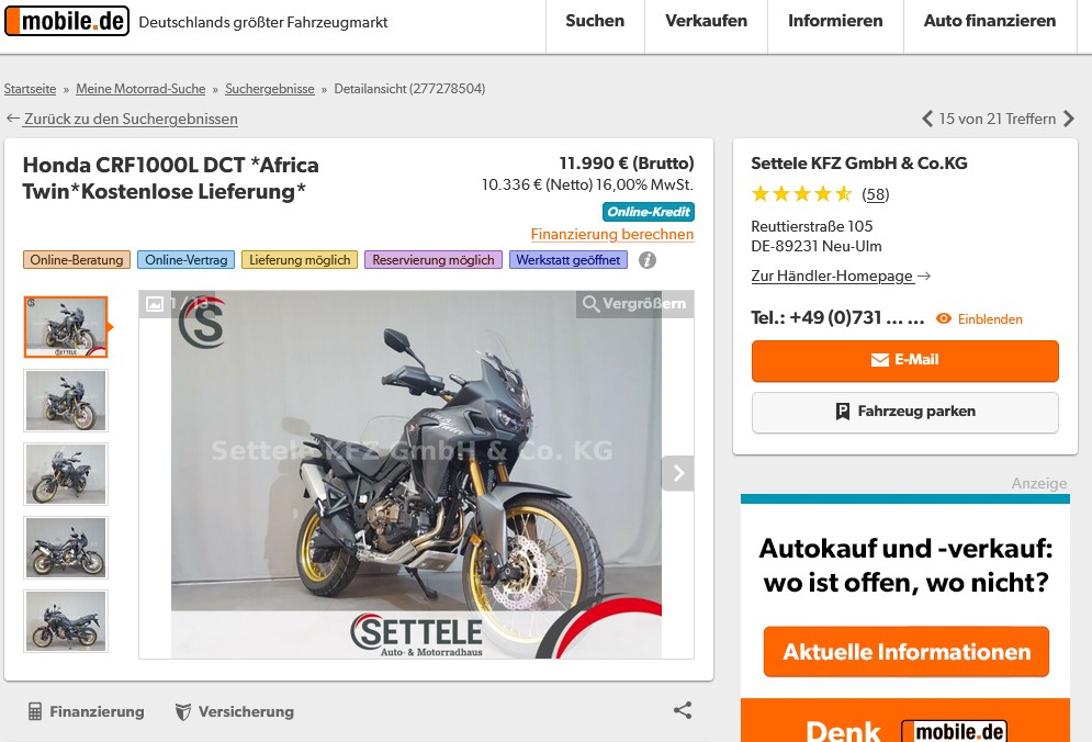 #67 Für so eine habe ich 09/2019 11kEuro gelegt (allerdings freier Händler, aber mit voller Garantie von Honda Deutschland):