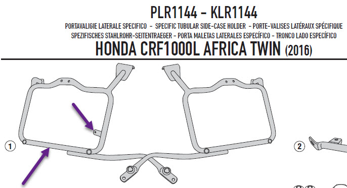 für meine Africa Twin SD04, Bj. 2016 suche ich das rechte Seitenteil des Givi-Kofferträgers PLR1144. In der Zeichnung mit den blauen Pfeilen gekennzeichnet.