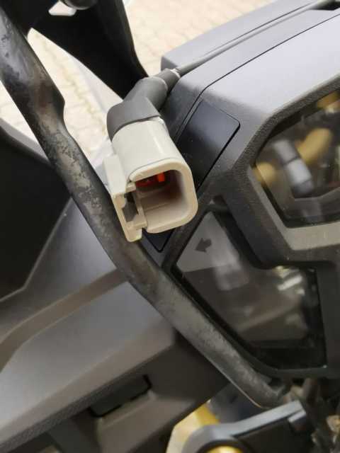Tricolor: So wie ich das sehe, ist das ein vom Vorbesitzer installierter Stecker (kein originaler Honda Stecker). Kann es sein, dass dessen Kabel rechts neben der Tachoeinheit in der Verkleidung verschwindet? Dann wäre es möglich, dass der Vorbesitzer den Strom für dieses zusätzliche Kabel vom vier poligen Zubehörstecker abgegriffen hat.