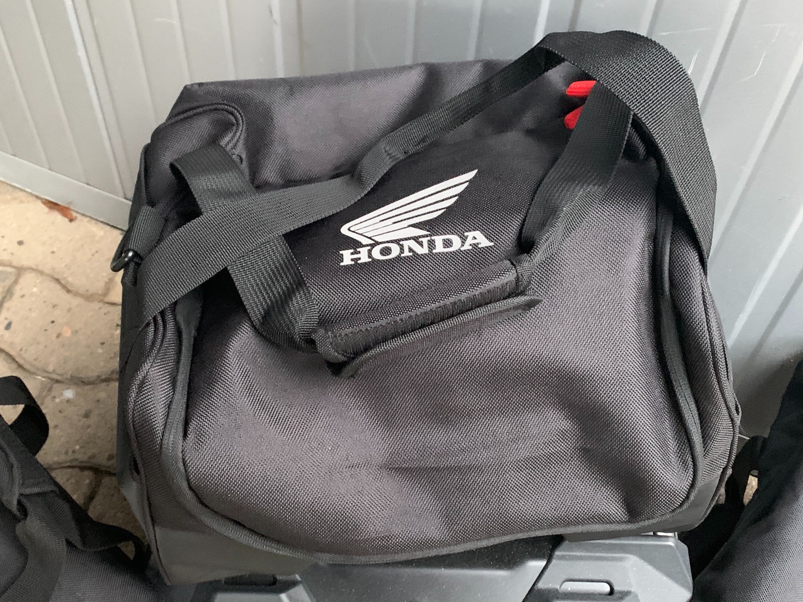 Die kleine Tasche mit 14 l hab ich in dem linken Koffer, und die große Tasche 26 l in dem rechten Koffer.