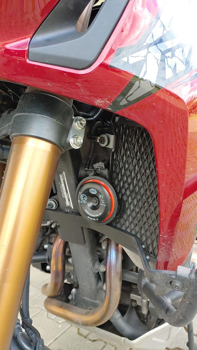 andere Hupe, farblich passend zum Mopped (fast). Vergleichstest steht noch aus.