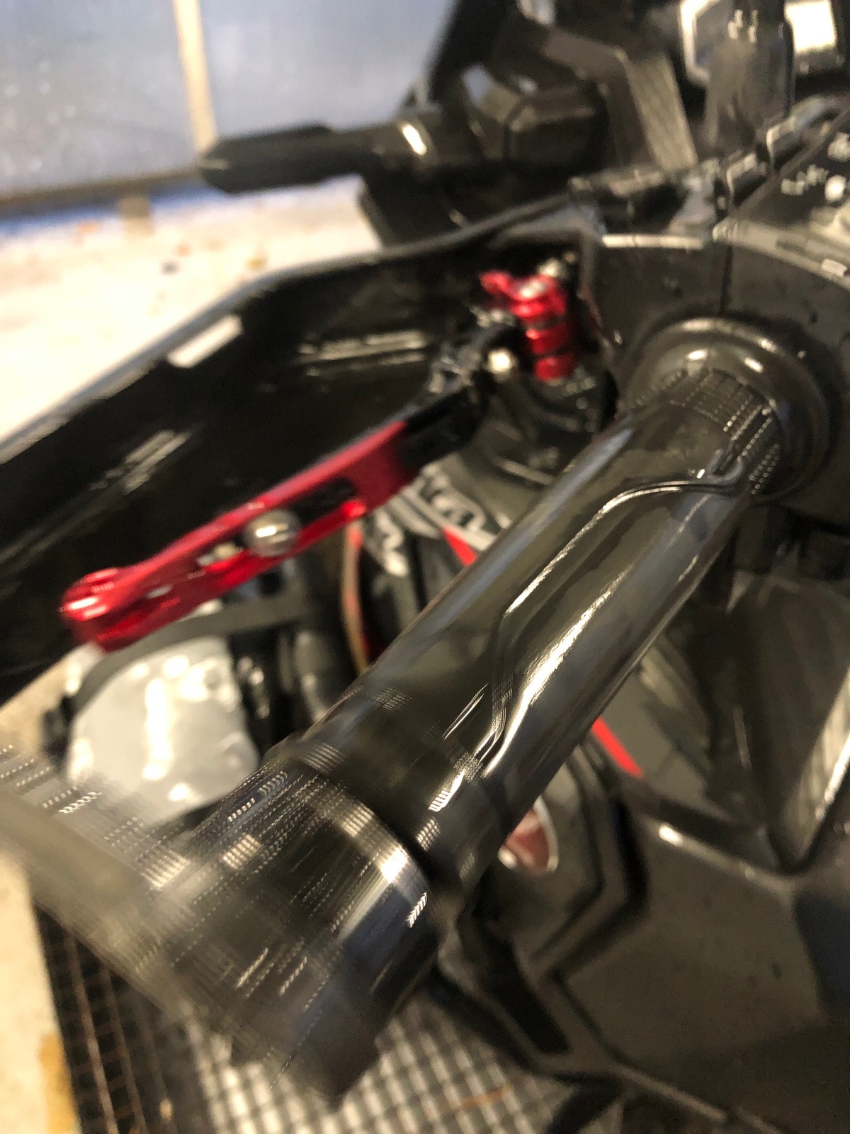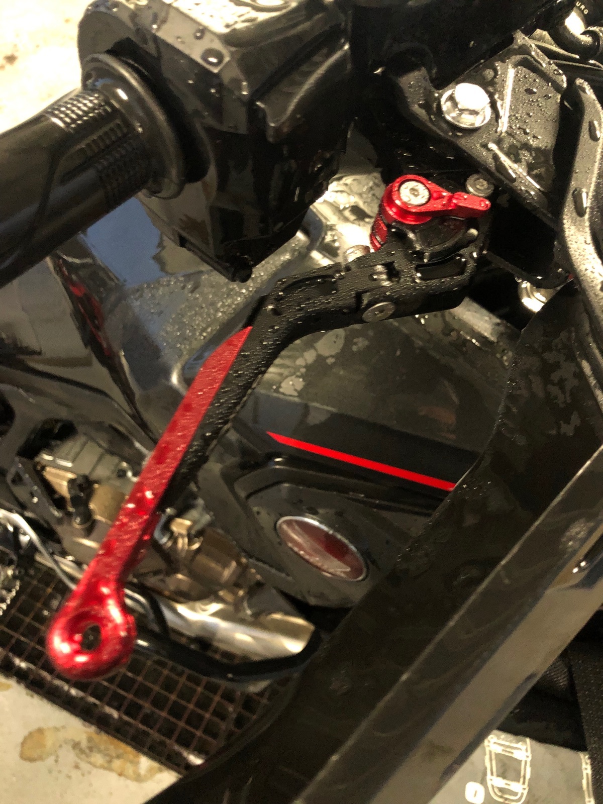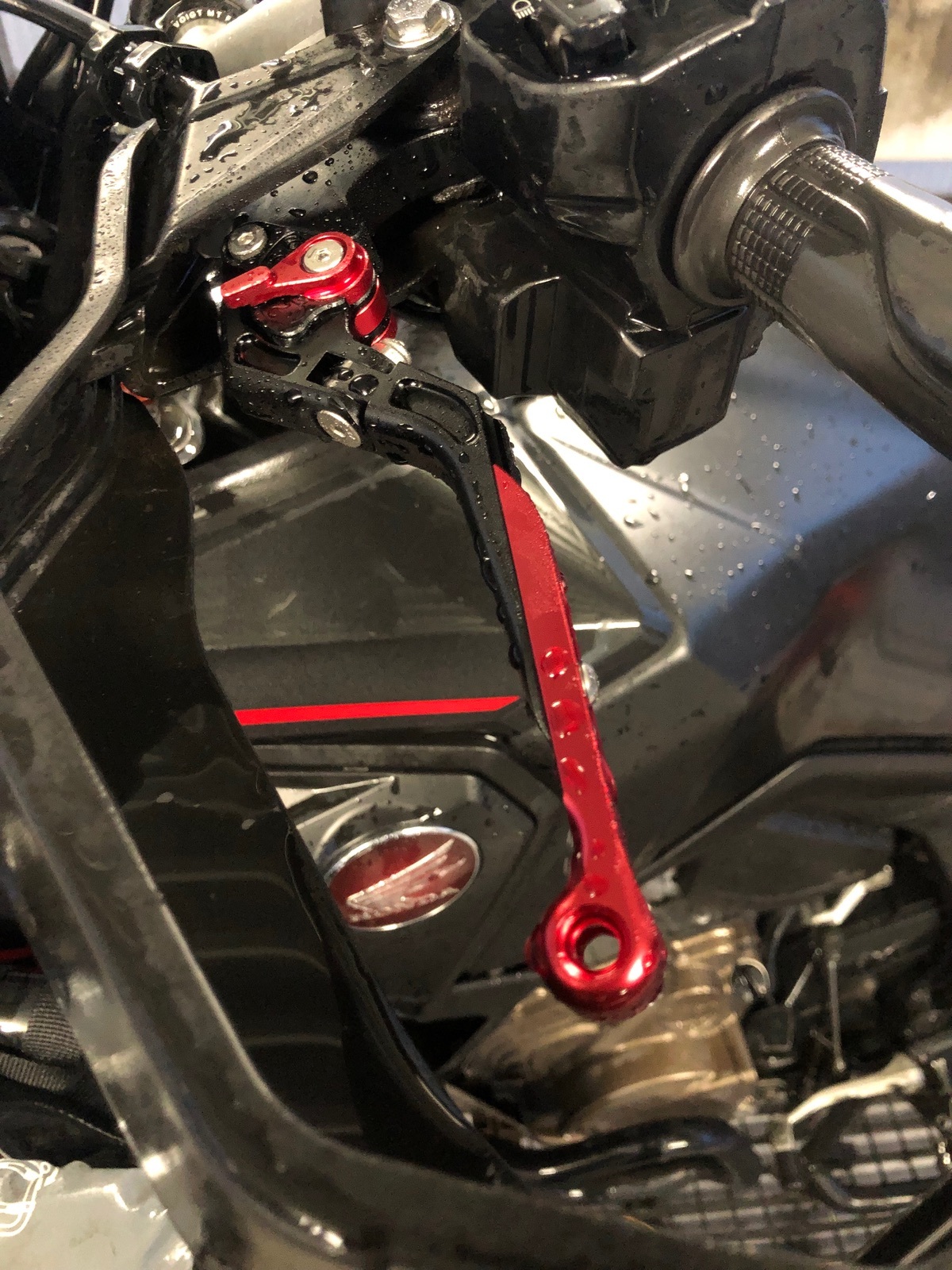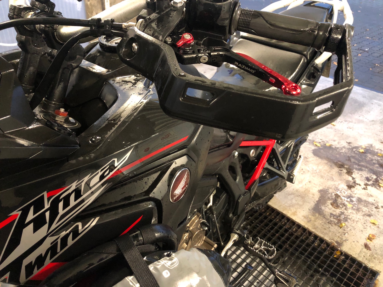 Heute auch mal die Raximo-Hebel montiert. Fühlen sich gut an. Das Rot ist zwar nicht 1:1 passend, aber da sich das Zierrot sowieso mit den Farben des Honda-Emblem beißt, ist es trotzdem schick …