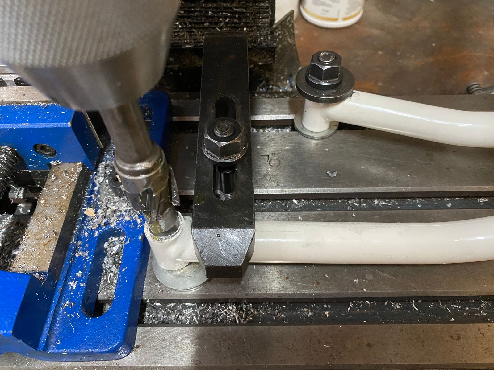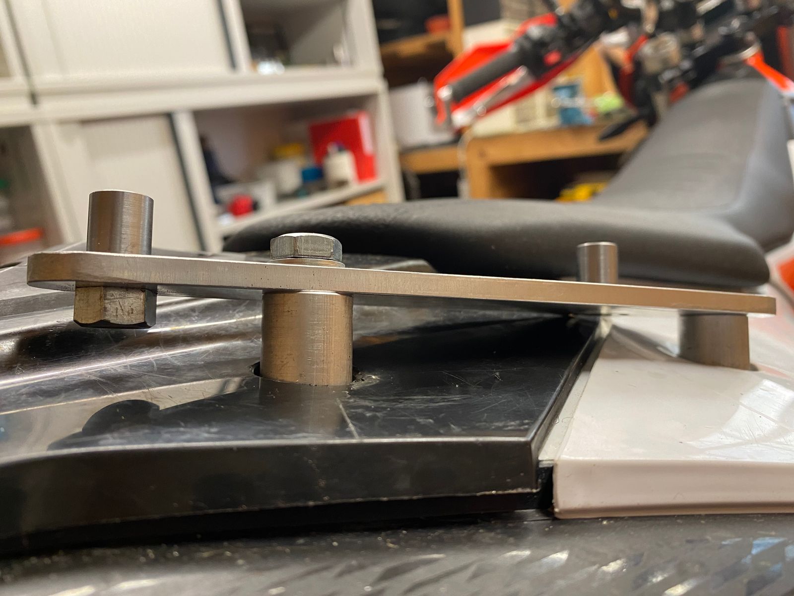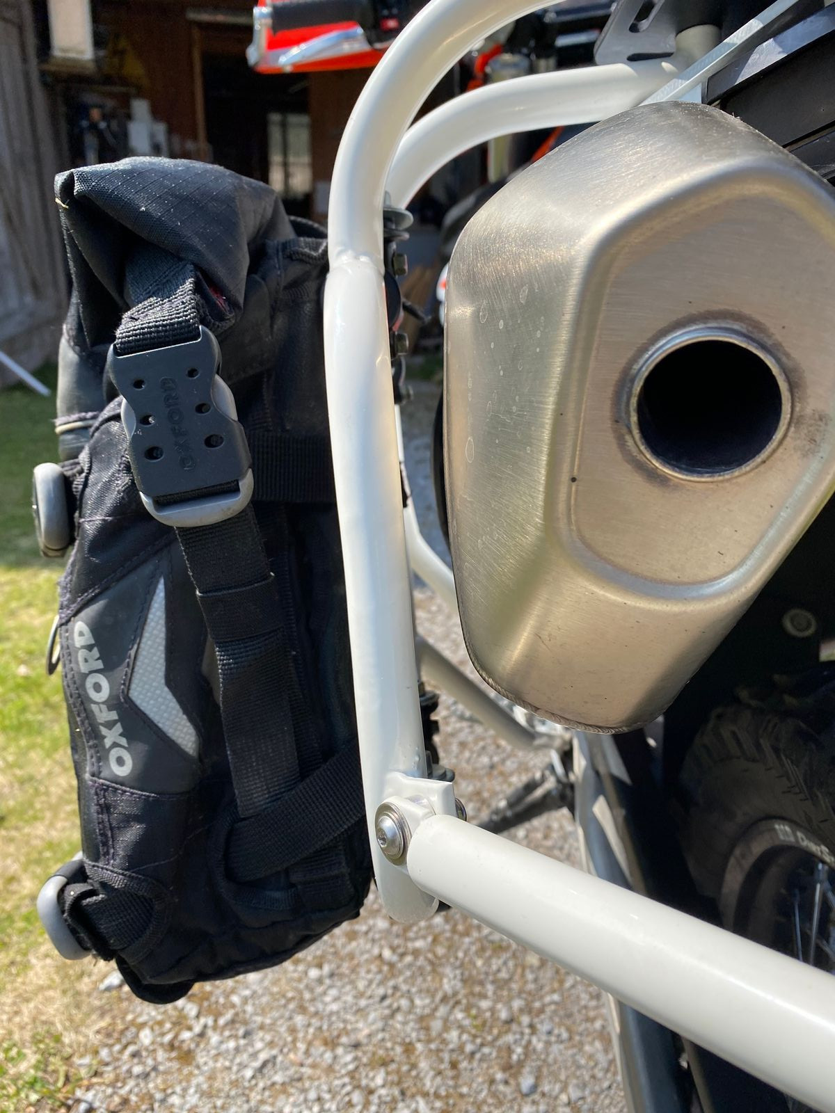 Btw: das habe ich zuletzt an meinem Motorrad gemacht: Kofferhalter für eine Husqvarna 701 geschenkt gekriegt und an meine 690 R angepasst. Ausgemessen, zuerst ein Provisorium gebaut und nochmal überdacht, danach Adapter aus 5mm Alu gefräst, aus Langmuttern Pressmuttern gedreht, Kofferhalter spannungsfrei gebogen. Halterungen für Seitentaschen montiert (sind eigentlich Aluklemmen für Rückspiegel.. acht Stück vom Ali besorgt) Passt nun alles tadellos. Alternativ zu den Seitentaschen kommen die schmalen, restaurierten Zegaboxen dran.