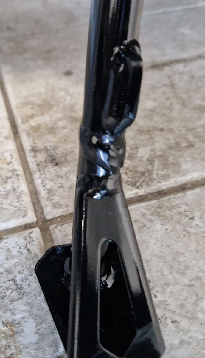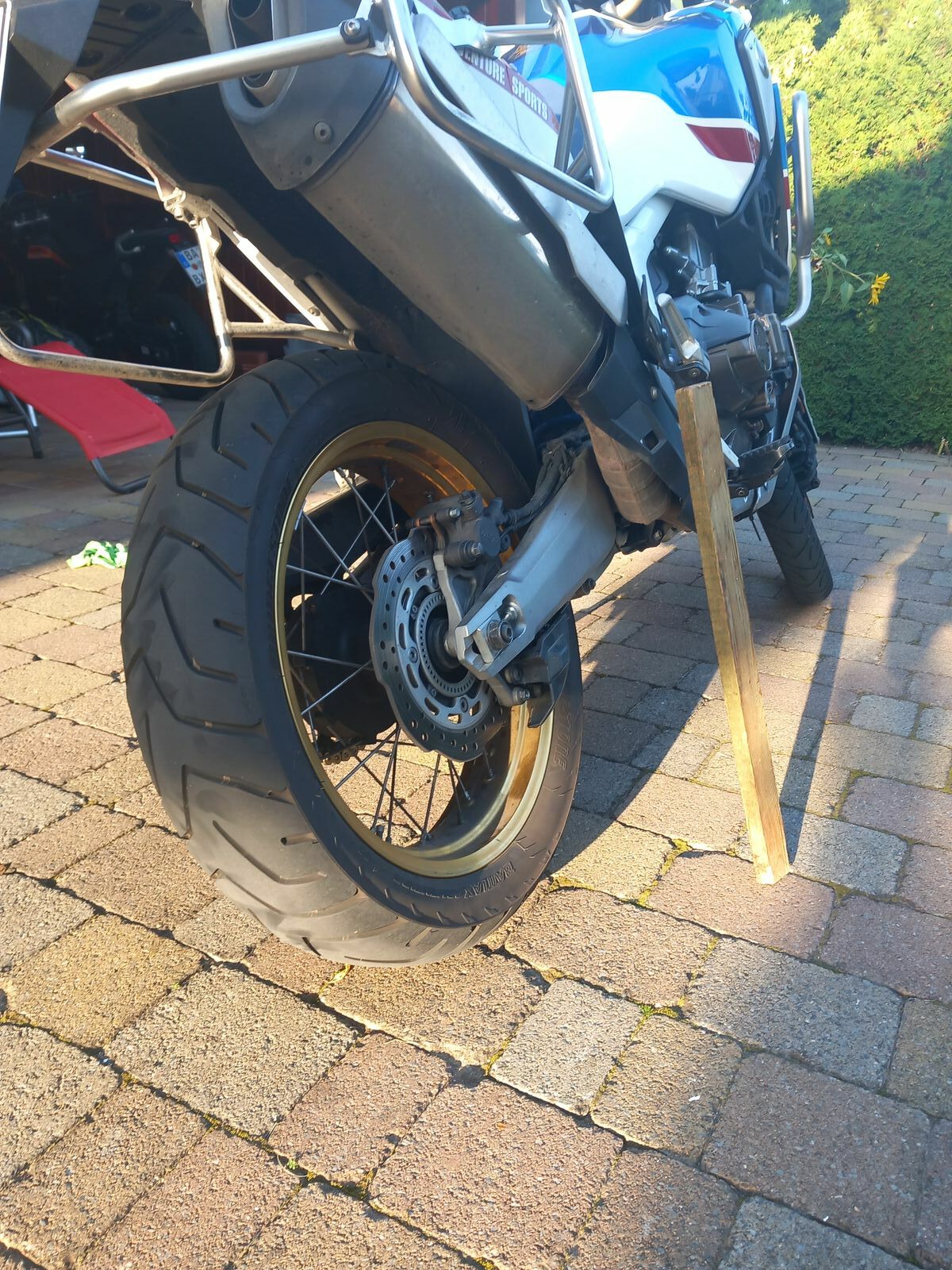 Nach dem Einbau der Tieferlegung bei Touratech heute noch den Seitenständer um ca.