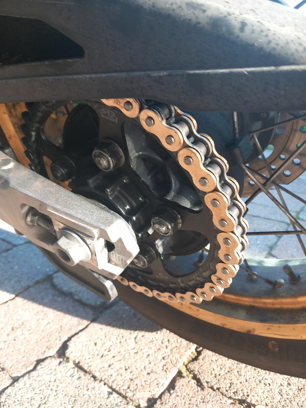 Hab heute nach knapp 50 tsd nen neuen Kettensatz bekommen...eine Did von der Luise, der Nietheini (Kumpel) meinte die Kette ,Ritzel und Blatt waren noch nicht so schlecht...da ich im Sept/Okt nochmal los möchte und der Satz schon länger zuhause lag hab ich jetzt präventiv wechseln lassen....und gleich mal mit system dachlatte geschmiert