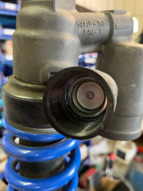 So starke Rostablagerungen im Rohr und am Kolben hatte mein Federbein nicht. Das Rohr lies sich recht gut demontieren war die Schraube samt Unterlegscheibe am Handrad glaube ich in den Eimer mit Schraubensicherung gefallen. Wir hatten echt zu tun die Schraube lösen zu können. Man hatte fast den Eindruck das die Unterlegscheibe mit der Schraube verschweißt wurde. Ein paar leichte Hammerschläge und beherztes Anpacken hat die Schraube dann aufgegeben.