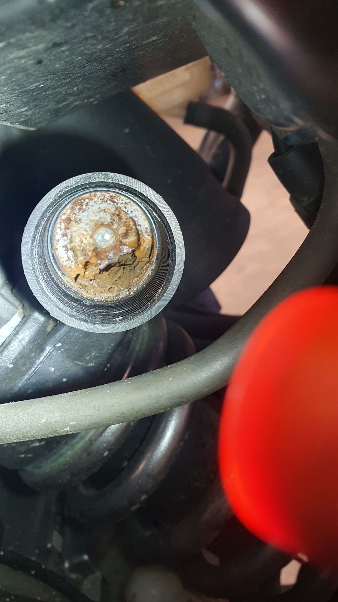 Nach Absaugen und einfetten des Gewindes und des Kolbens konnten ohne Probleme die neuen Teile montiert werden.