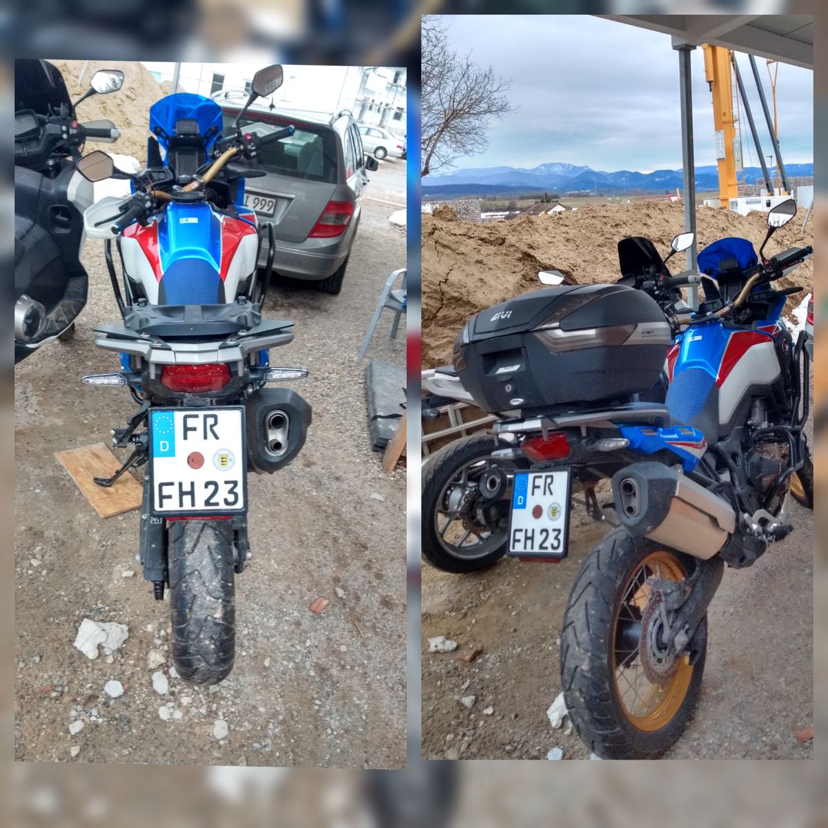 Und heute habe ich sie gleich drangebaut, Löcher für den Topcaseträgergebohrt und...