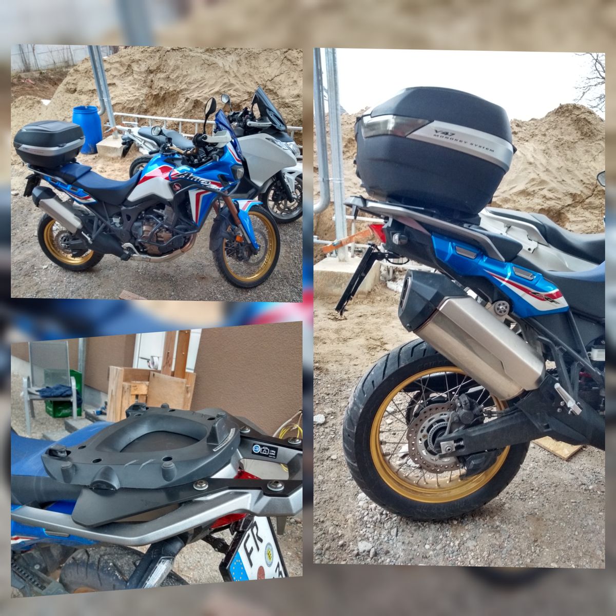 ...ja den Givi Topcaseträger müsste ich erst noch anpassen, da er unten nicht flach war. Das ging mit einer Art Dremel jedoch sehr sauber.