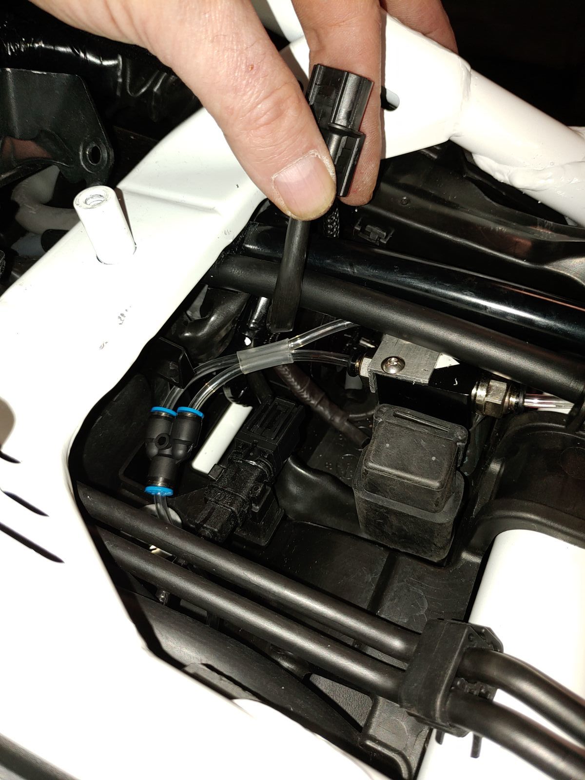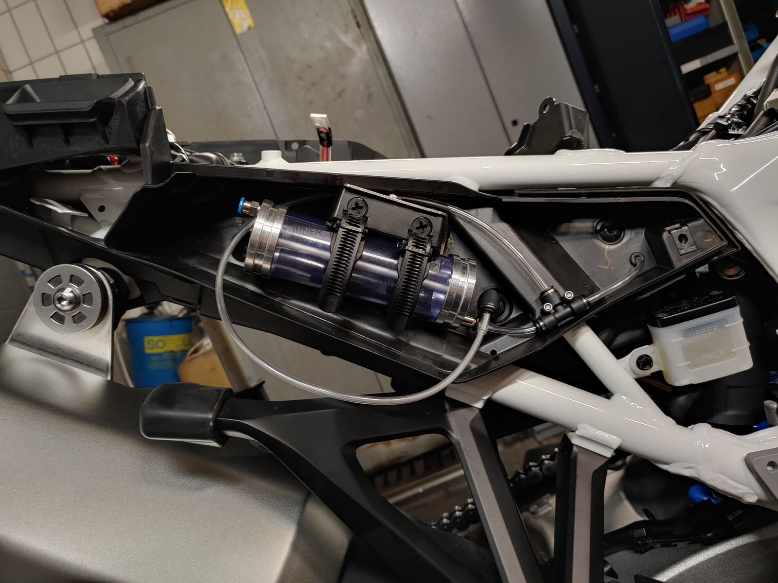 Angefangen habe ich mit einem Kettenöler Mofessor von Berotec. Den hatte ich auch schon in meiner alten At verbaut und war sehr zufrieden. Nach einem längeren Gespräch mit den Jungs von Berotec habe ich mich bereiterklärt den Betatester zu machen und einen Öler mit 2 einzelnen Düsen einzubauen. Laut Berotec soll somit eine bessere und gleichmäßig Schmierung gewährleistet sein. Wie beim letzten Einbau ist mir wichtig das ganze möglichst unsichtbar zu verbauen und so wenig wie möglich Veränderungen am Moped vorzunehmen. Hier mal ein paar erste Bilder.