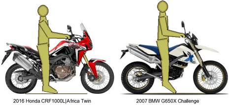 ..ganz genau. Ich habe mich vor für meinen Teil daran gewöhnt darauf zu achten, die Beine etwas weiter hinter den Rasten abzustellen. So komme ich noch besser auf den Boden statt mit gespreizten Beinen.
