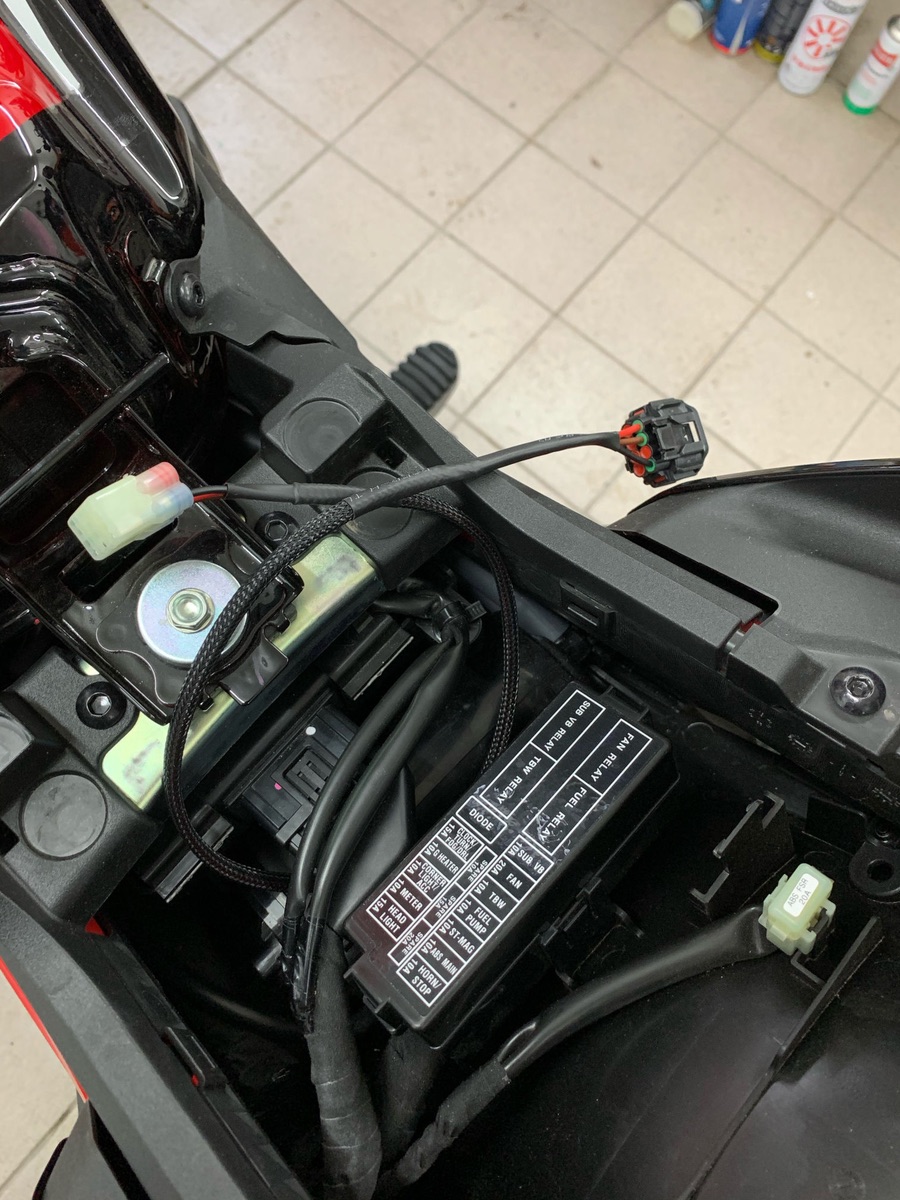 Ich stand vor dem selben Problem und bin recht bald auf den 8 poligen Zubehörstecker unter der vorderen Sitzbank gestoßen. Leider waren die Adern meines Anschlusssteckers (Ctek) zu dick für diesen Stecker. Ohne Silikondichtungen hätte ich in zwar anschließen können, aber das würde den wasserdichten Stecker ad absurdum führen.