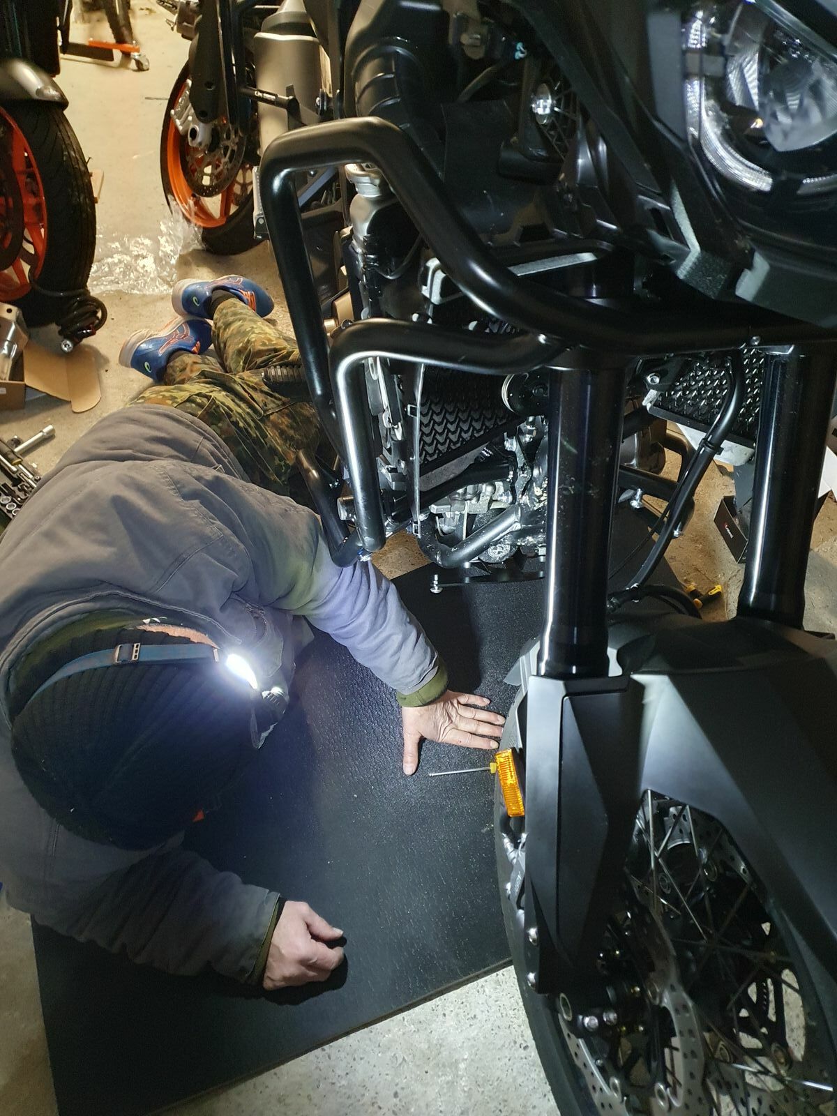 Die oberen Bügel und die Motorschutzplatte solltest du auch vor einer großen Inspektion abmontieren, damit sich das dein Händler nicht auch noch bezahlen lässt.