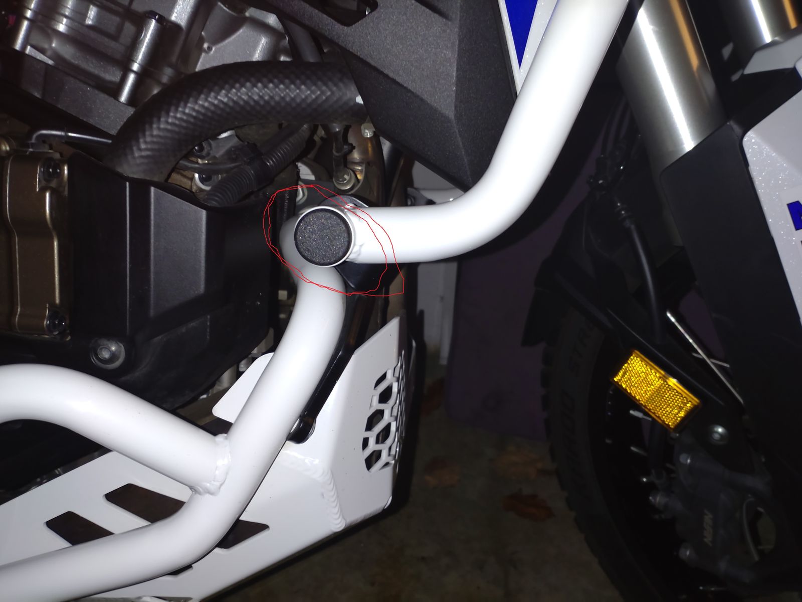 Heute ist der Tag, an dem ich verfluche, im Urlaub mit dem Projekt Sturzbügel/Motorschutzplatte angefangen zu haben. Nach weiteren 4 Stunden (eine davon mit personeller Unterstützung) kriechend, liegend, knieend, gebückt folgendes Ergebnis: Sturzbügel an nur einer Seite montiert, Motorschutzplatte gar nicht!