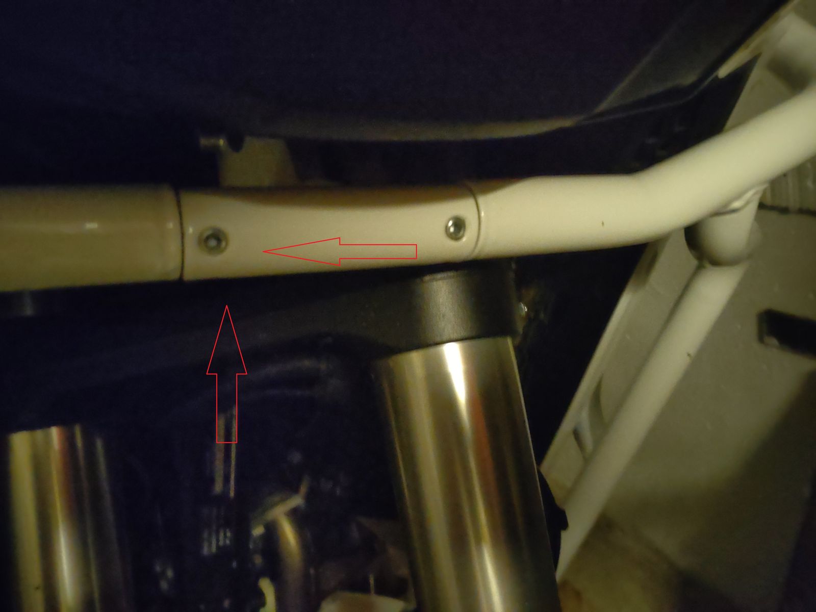 Rechten Bügel abziehen, Verkleidungen wieder dran. Jetzt kannst Du rein theoretisch schon wieder fahren.