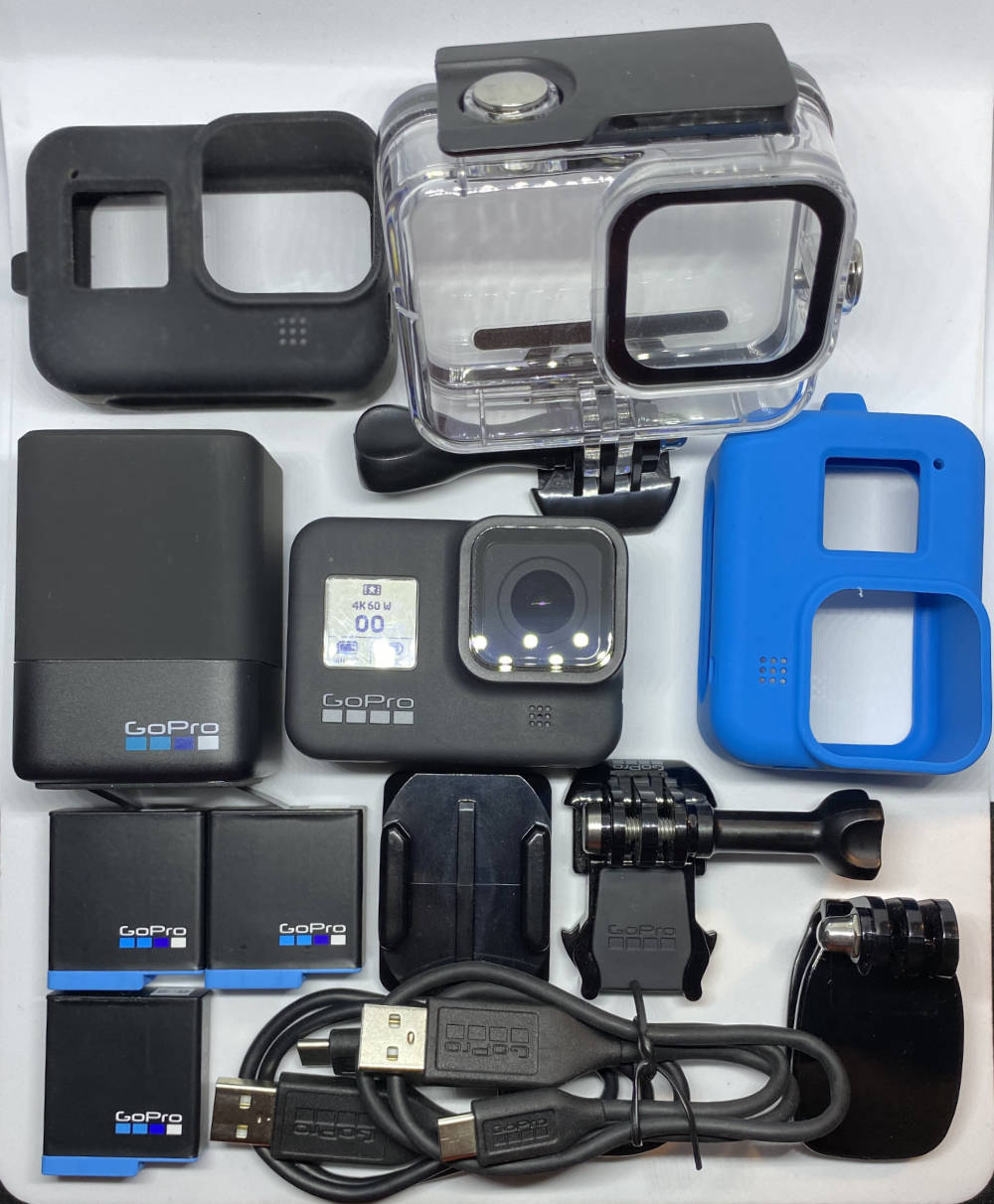 Verkaufe eine HERO8 Black Kamera, Display, Objektiv und Cam technisch und optisch in Topzustand, Original Lieferzubehör liegt bei - USB-C-Kabel, Akku, Gebogene Klebehalterung, Befestigungsclip, Flügelschraube.