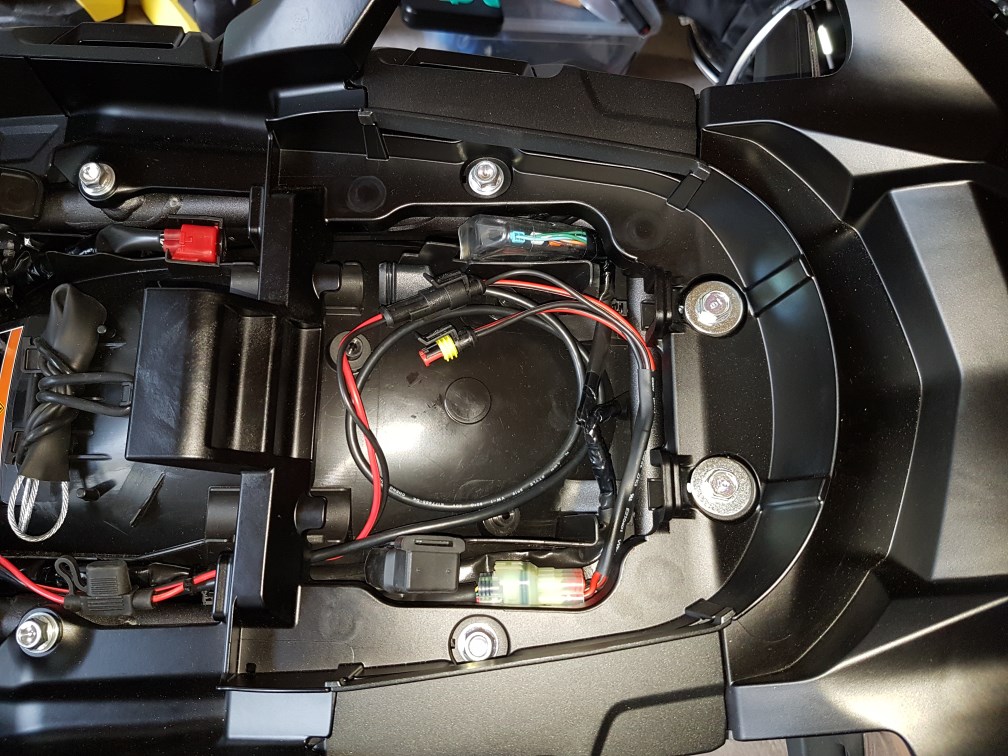 #12 Das Problem ist der Spannungswandler für USB (oder was immer). Die Kiste passt nicht neben die Batterie oder under das schwarze Plastik unter dem Tank lang. Müsste also nach vorne zum Lenker. Bei den mir bekannten Kabelbäumen sind die Kabel dafür aber nicht lang genug. Man muss also zusammenstoppeln.