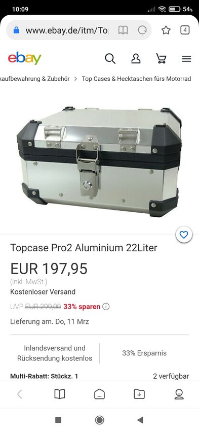 Ja, da gebe ich dir Recht. Ich wollte auch keinen "Kühlschrank" hinten drauf montieren, war zuerst sogar am überlegen mir den Pro2 mit nur 22 Liter zu holen aber dann kam meine Frau ins Spiel...