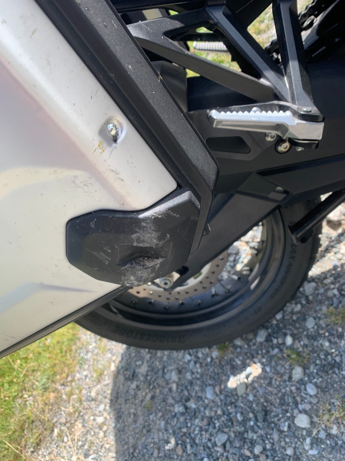 #7 Den Touratech-Traeger habe ich an meiner 2016er SD-04, der wird sowohl in die Originalhalterung oben eingehangen als auch durch den Fender mit dem Rahmen verschraubt. Die normalen Umfaller im Gelaende sollte der mitmachen. Mein Motorrad hat auch mal auf der Seite gelegen, allerdings ist es nie mit viel Schwung auf den Traeger gerasselt und ich fahre keine Kisten, sondern Stofftaschen spazieren.