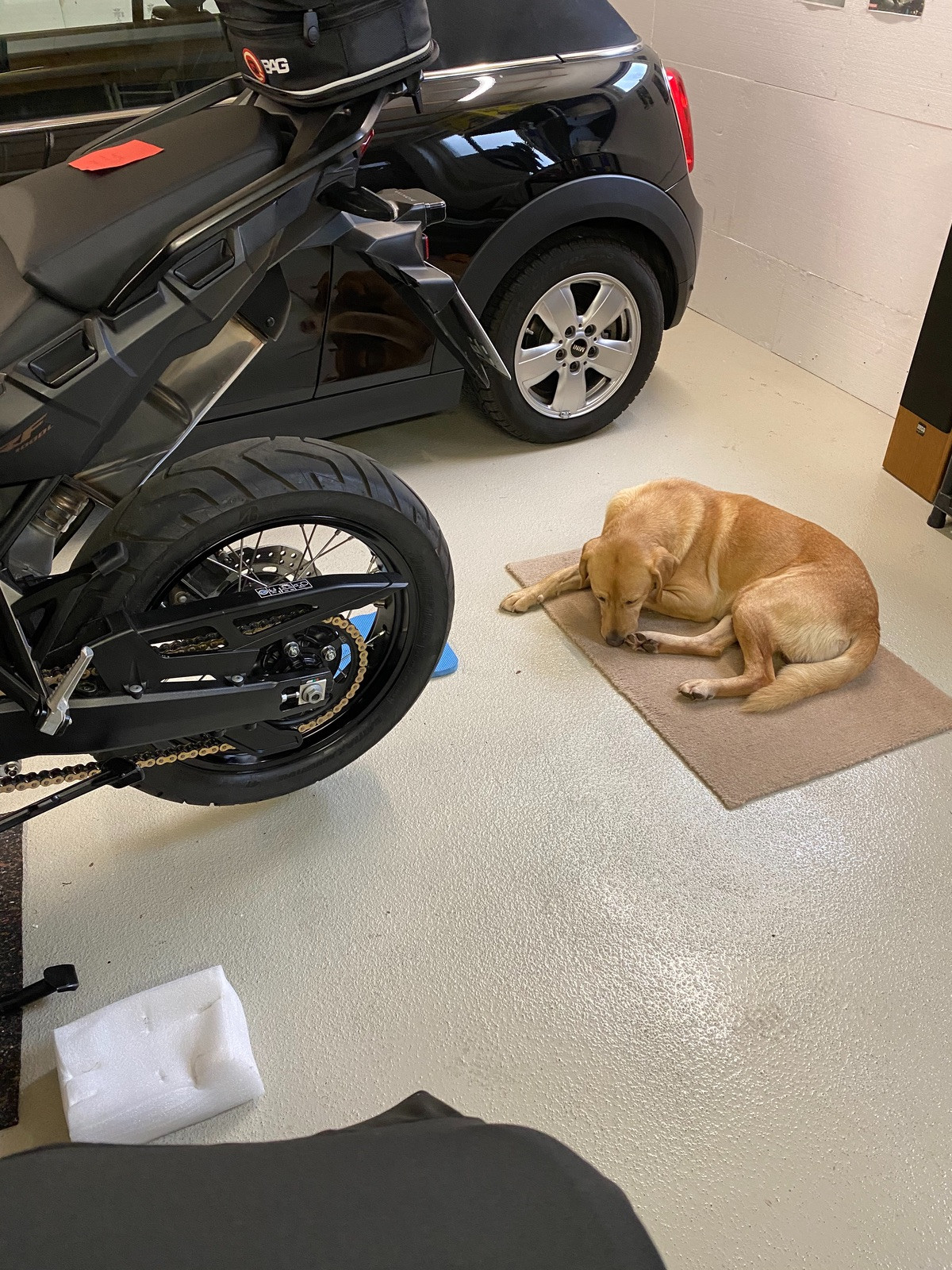 Der Hund ist immer da wo ich gerade bin , deshalb taucht er auf Fotos immer wieder auf. Nur Motorrad fahren darf ich noch allein