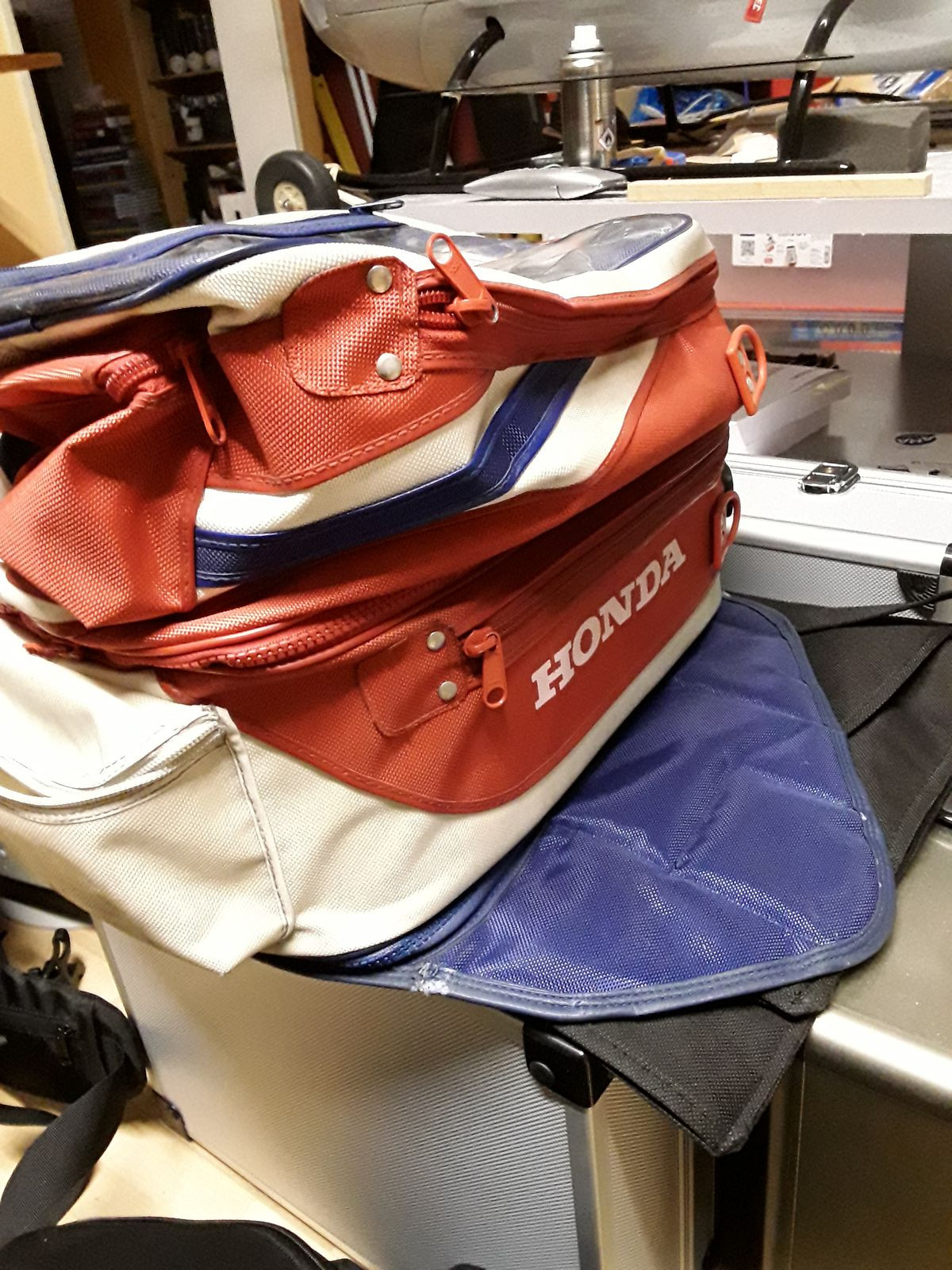 ich habe beim räumen den abgebildeten Magnettankrucksack ans Tageslicht befördert. Mit ein wenig Aufwand ist der sicher noch eine Zeitlang gut zu gebrauchen. Das Kartenfach ist nicht mehr sonderlich gut. Die Folie ist etwas undurchsichtig geworden. Alle Reisverschlüsse sind in Ordnung. Damit es später keine Reklamationen gibt bitte ich um abholung